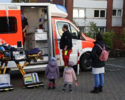 Auch die Feuerwehr Gronau war zu dieser Veranstaltung eingeladen. Mit dem LF20KatS, der DLK 23/12 und dem Rettungswagen informierten die Feuerwehrleute über Fahrzeuge, Geräte, Ausrüstung sowie Aufgaben der Feuerwehr.