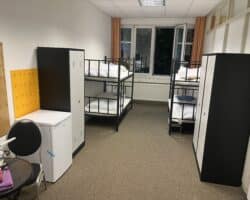 In der ehemaligen Pestalozzischule wurden in den Klassenräumen Betten aufgebaut, Spinte aufgestellt und Kühlschränke installiert. Alle Zimmer wurden mit Matratzen, Kissen und Bettdecken, Geschirr und weiteren notwendigen Utensilien ausgestattet.