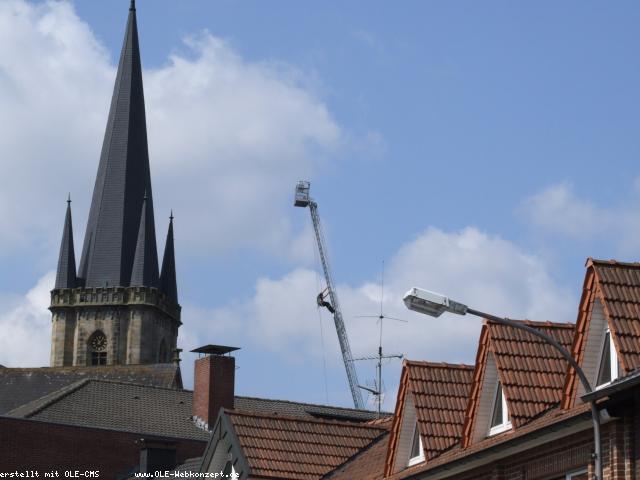 Bei herrlichstem Wetter wurde die offizielle Eröffnung des 125. Feuerwehrgeburtstages begangen. Nach der Feuerwehrmesse in der Agatha- Kirche und der Kranzniederlegung stellte der Löschzug Epe rund um den Kirchplatz eine interessante Fahrzeug- und Geräteschau.