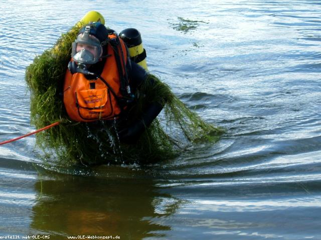 Feuerwehrtaucher sucht sein Geschenk im Drilandsee