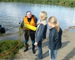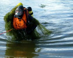 Feuerwehrtaucher sucht sein Geschenk im Drilandsee