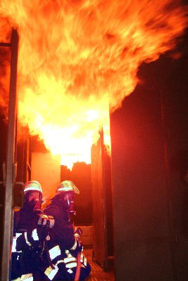Bei einem Wohnungsbrand wurden zwei Feuerwehrleute schwer verletzt. Auf der Suche nach einem vermissten Kind öffneten die Feuerwehrleute die Kinderzimmertür. In diesem Augenblick zündete das Feuer durch und erfasste die beiden Kollegen. Trotz getragener Nomex-Kleidung (zweilagiger Materialaufbau) kamen beide Feuerwehrleute mit schwersten Brandverletzungen in das Aachener Klinikum. Das 2jährige Kind konnte anschließend nur noch leblos geborgen werden.