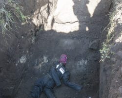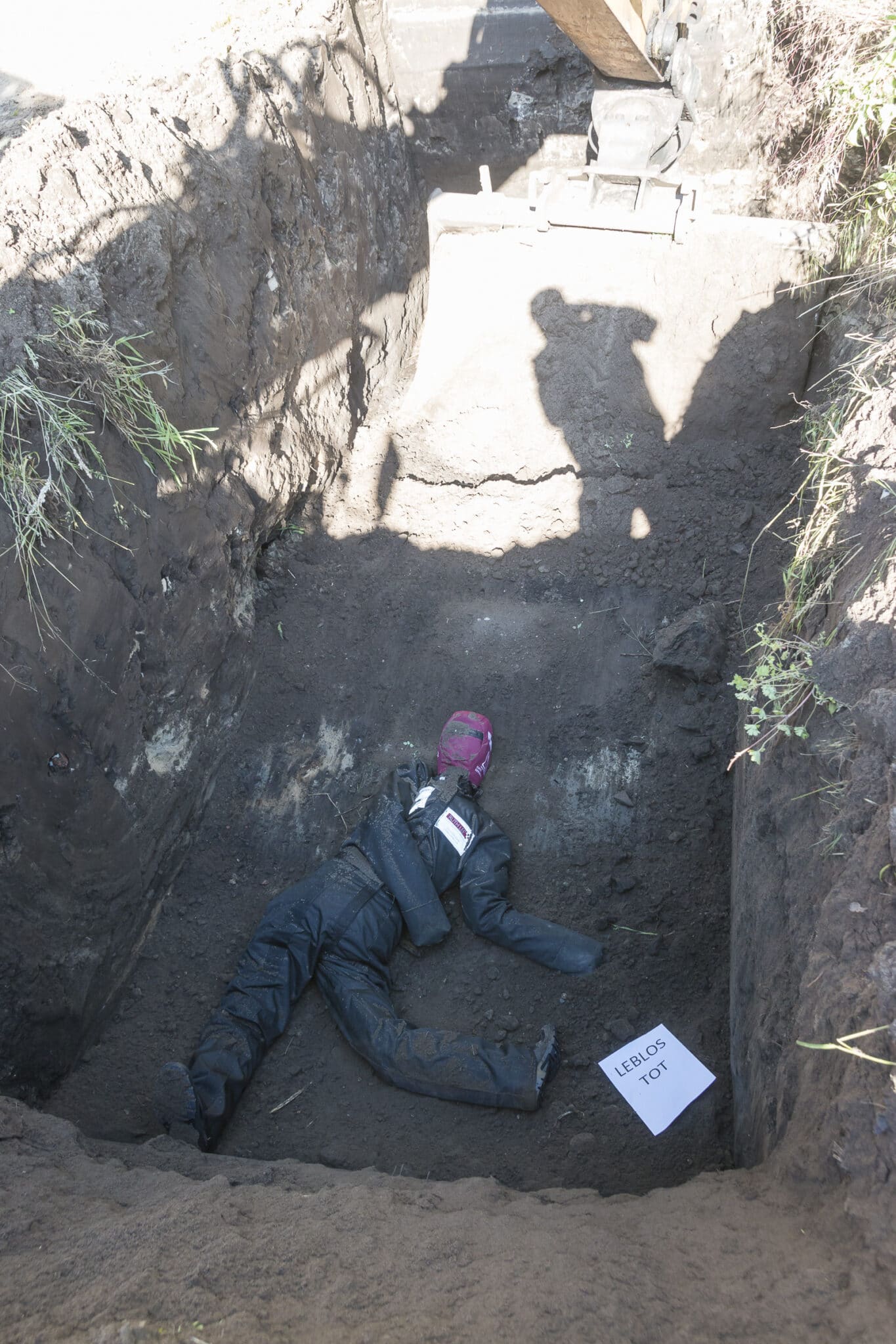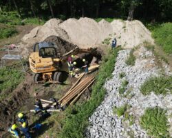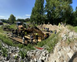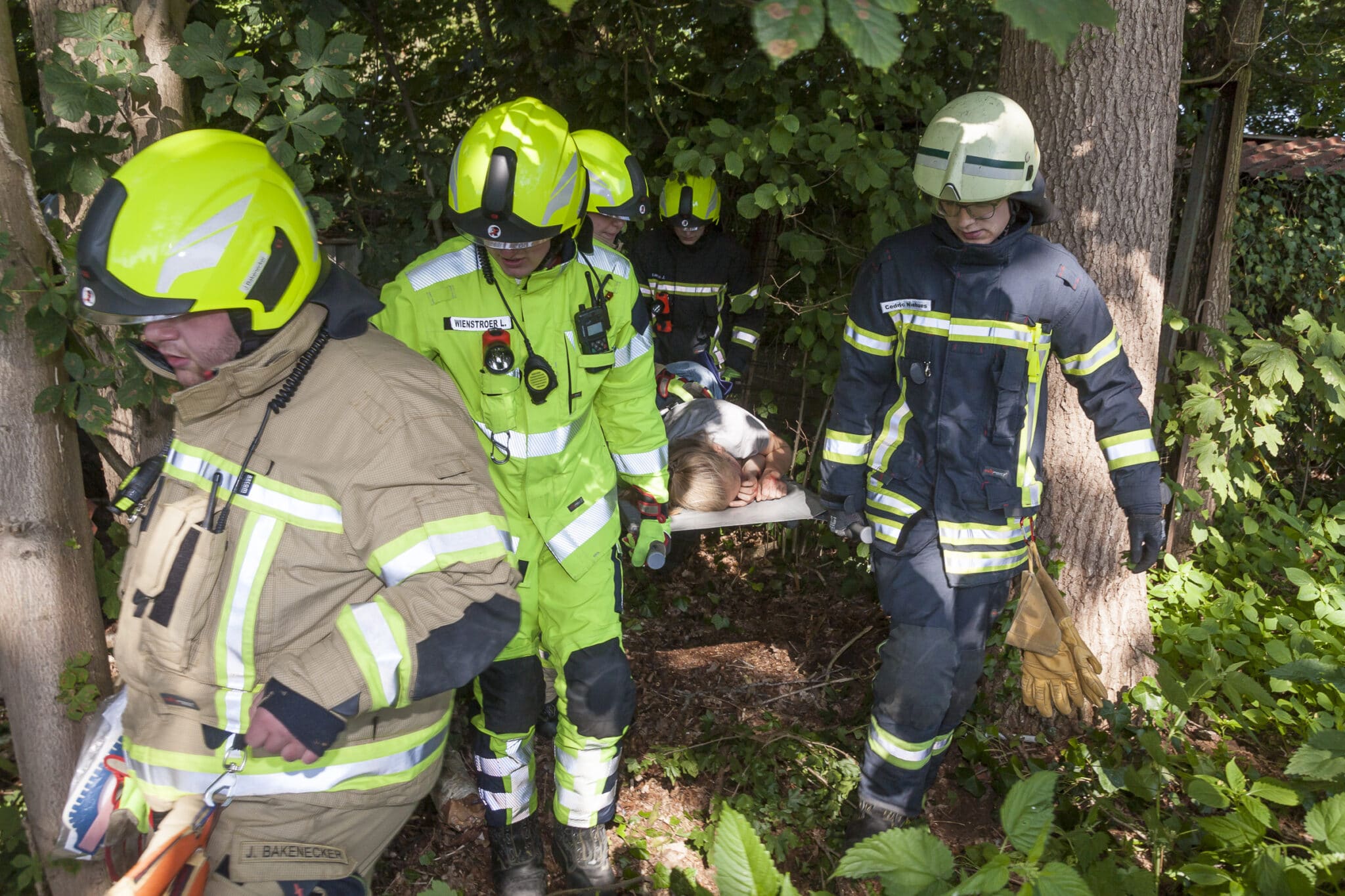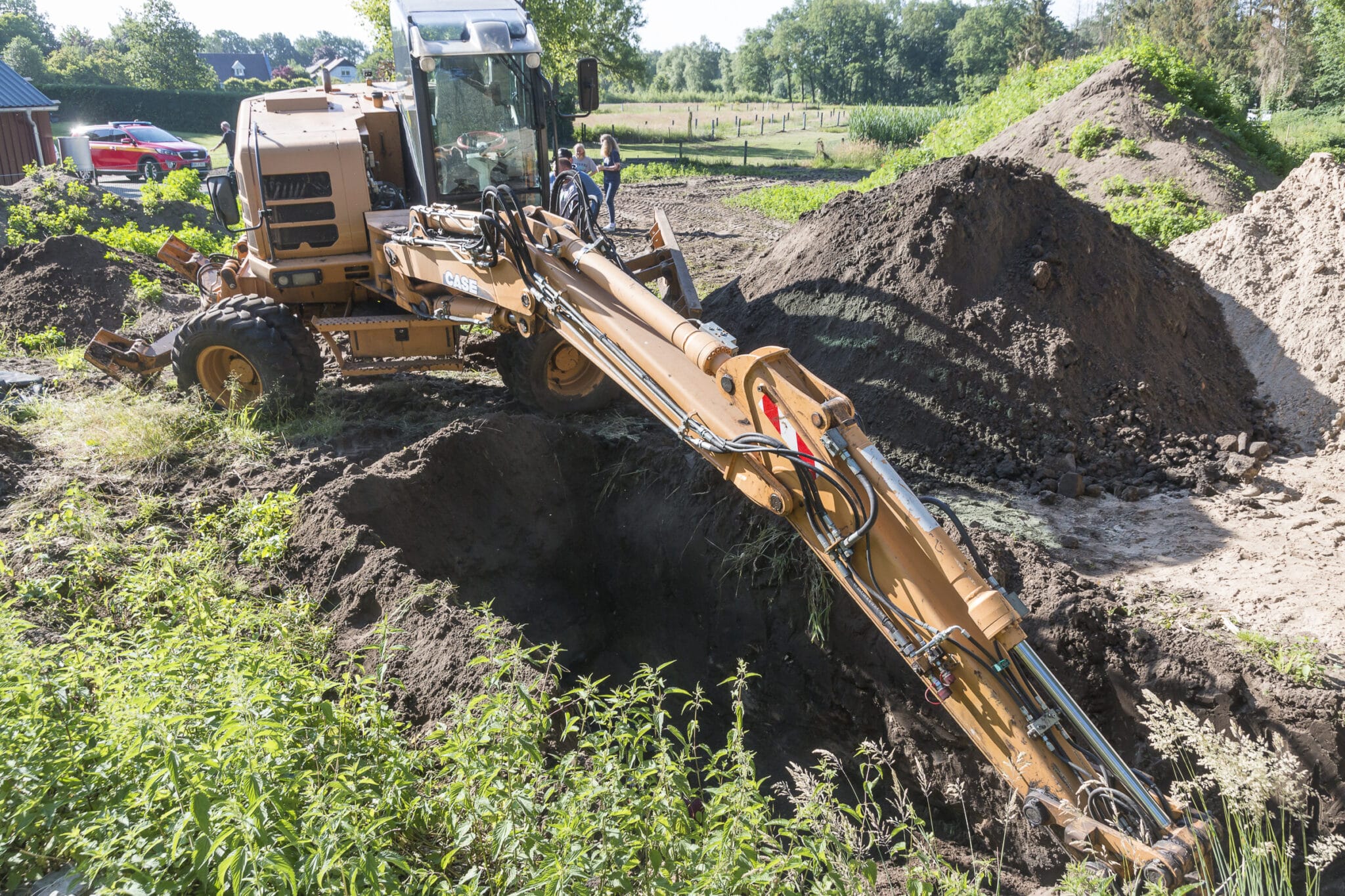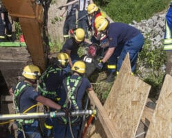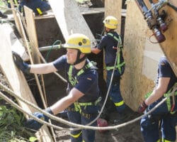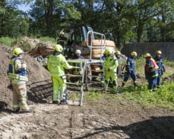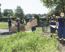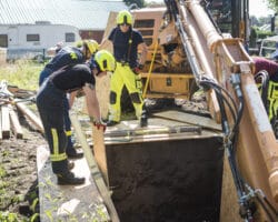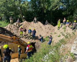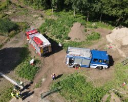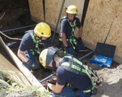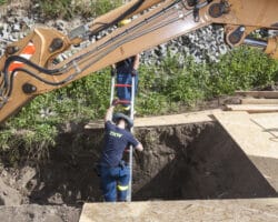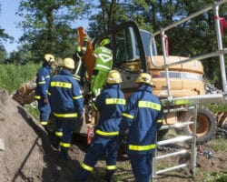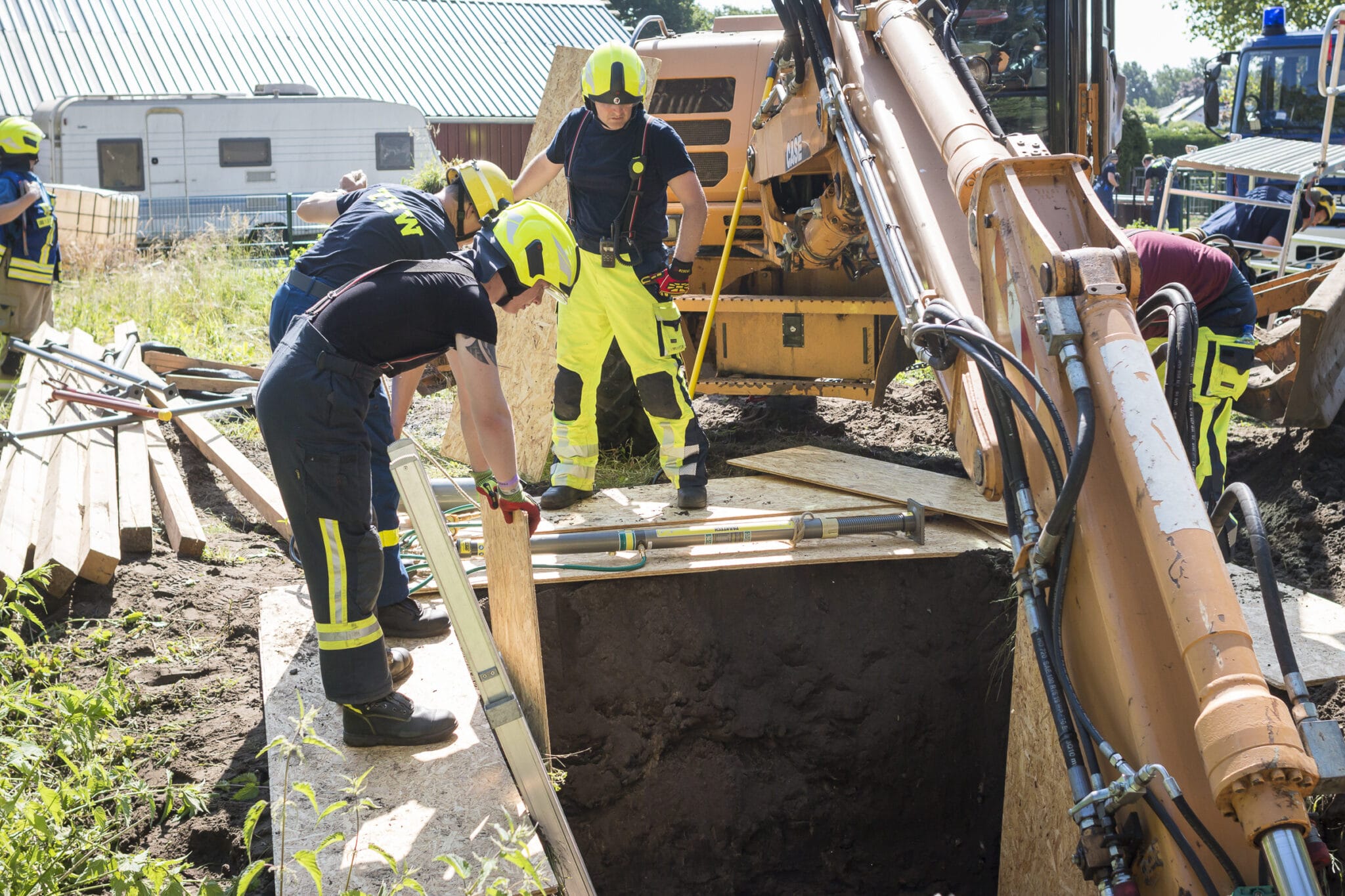 Anschließend wurde die Person aus der Baugrube geborgen. Hierzu musste die ca. 2 Meter tiefe Baugrube zunächst gegen Einsturz gesichert werden.