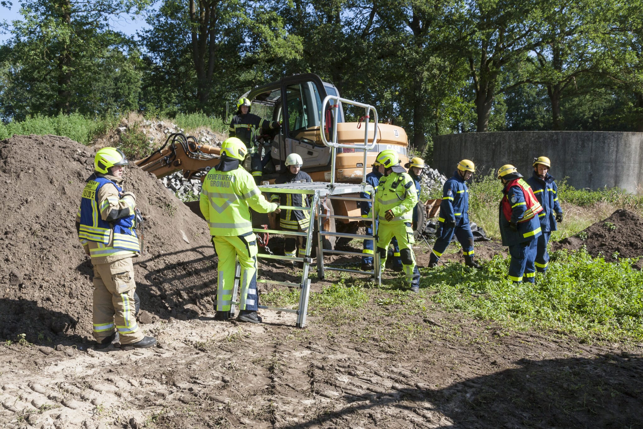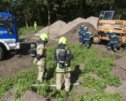Samstag Vormittag 9:15 Uhr – die Funkmeldeempfänger des Löschzuges Gronau lösen aus und zeigen das Stichwort: Explosion, Person verschüttet nach Tiefbauarbeiten