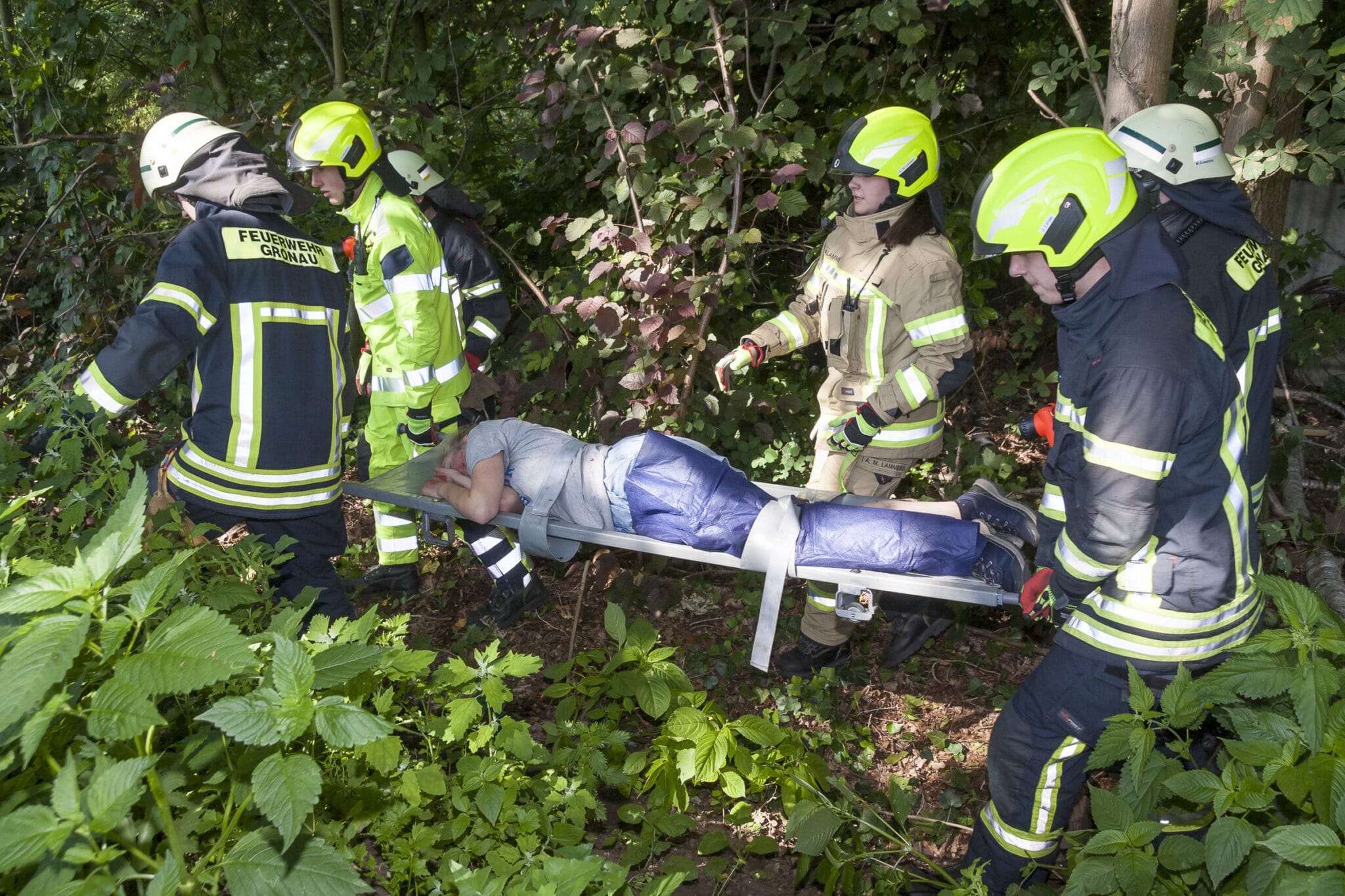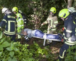 Beim absuchen der Unfallstelle wurde eine weitere verletzte Person im angrenzenden Buschwerk gefunden und musste von dort in die eingerichtete Patientenablage verbracht werden.