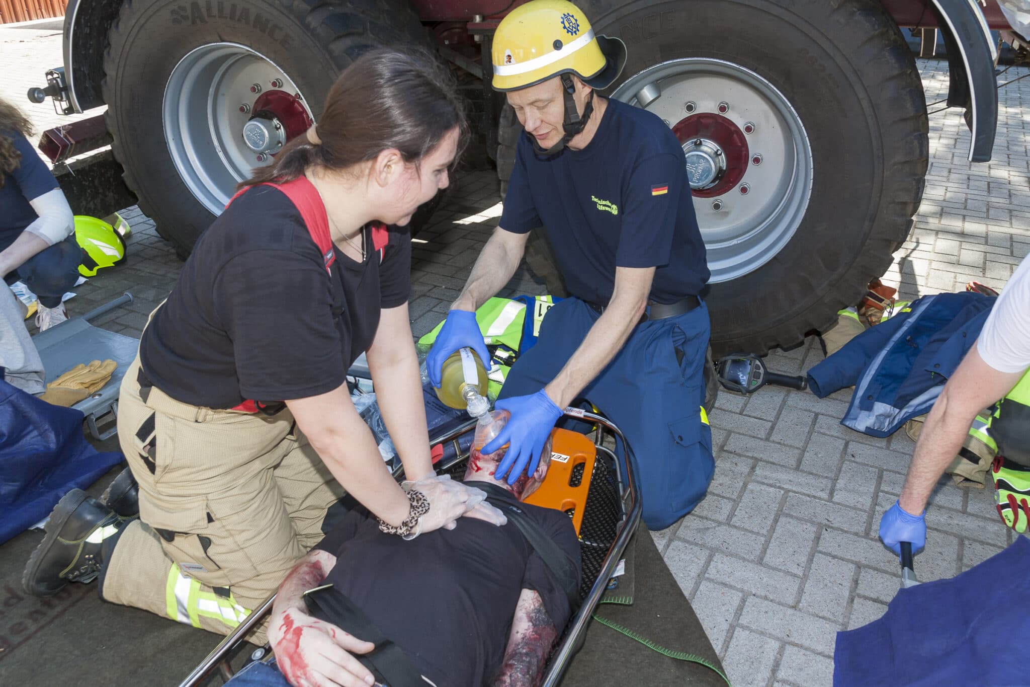 Wir Danken der Familie Berkemeier, das die Übung auf deren Hof stattfinden konnte. Ebenfalls vielen Dank der Firma Hönerlage für den zur Verfügung gestellten Bagger. Und nicht zu vergessen die realistisch geschminkten Verletztendarsteller.