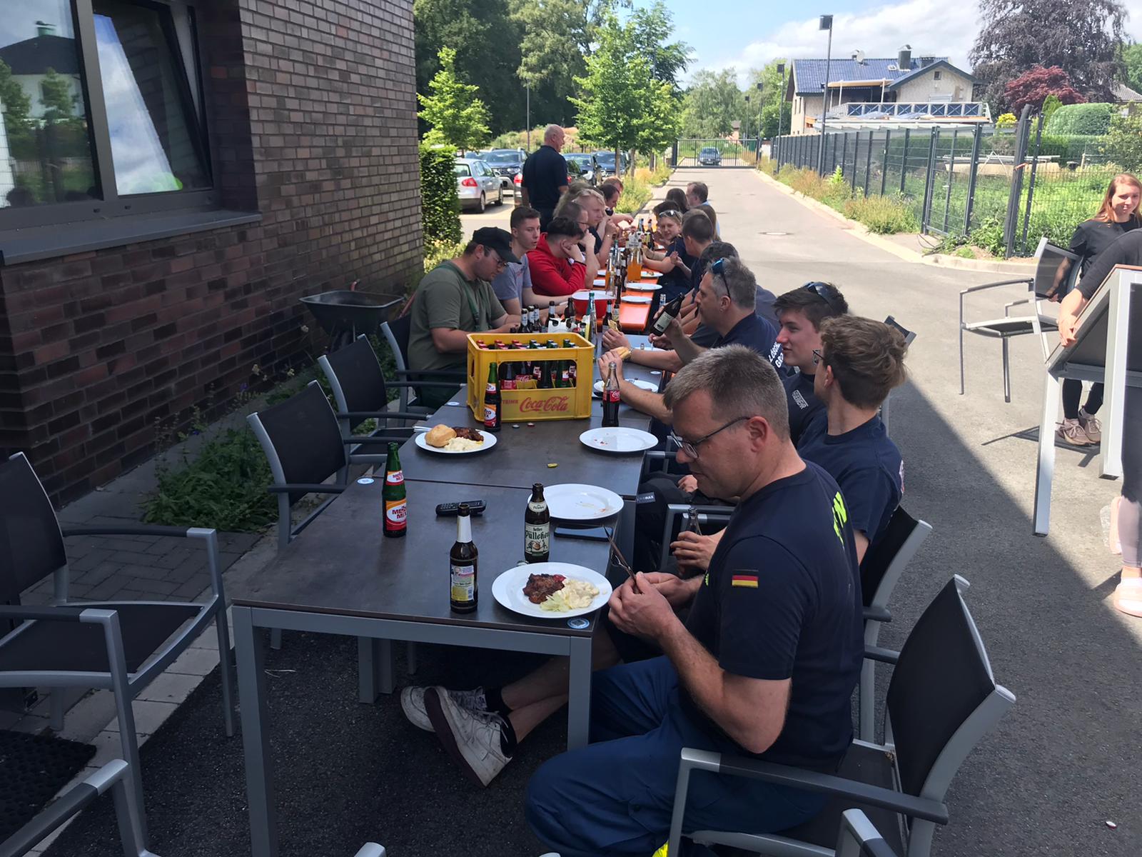 Nach der Übung trafen sich alle Einsatzkräfte an der Feuer- und Rettungswache zum gemeinsamen Grillen.