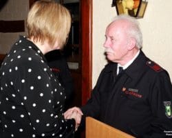 Zwei Kameraden wurden mit der Auszeichnung des Feuerwehr-Ehrenkreuzes überrascht. Der Bezirksbrandmeister, Donald Niehues, konnte Günter Setzpfand und Günter Kendzierski für außergewöhnliche Verdienste mit dem Feuerwehr Ehrenkreuz in Bronze auszeichnen.