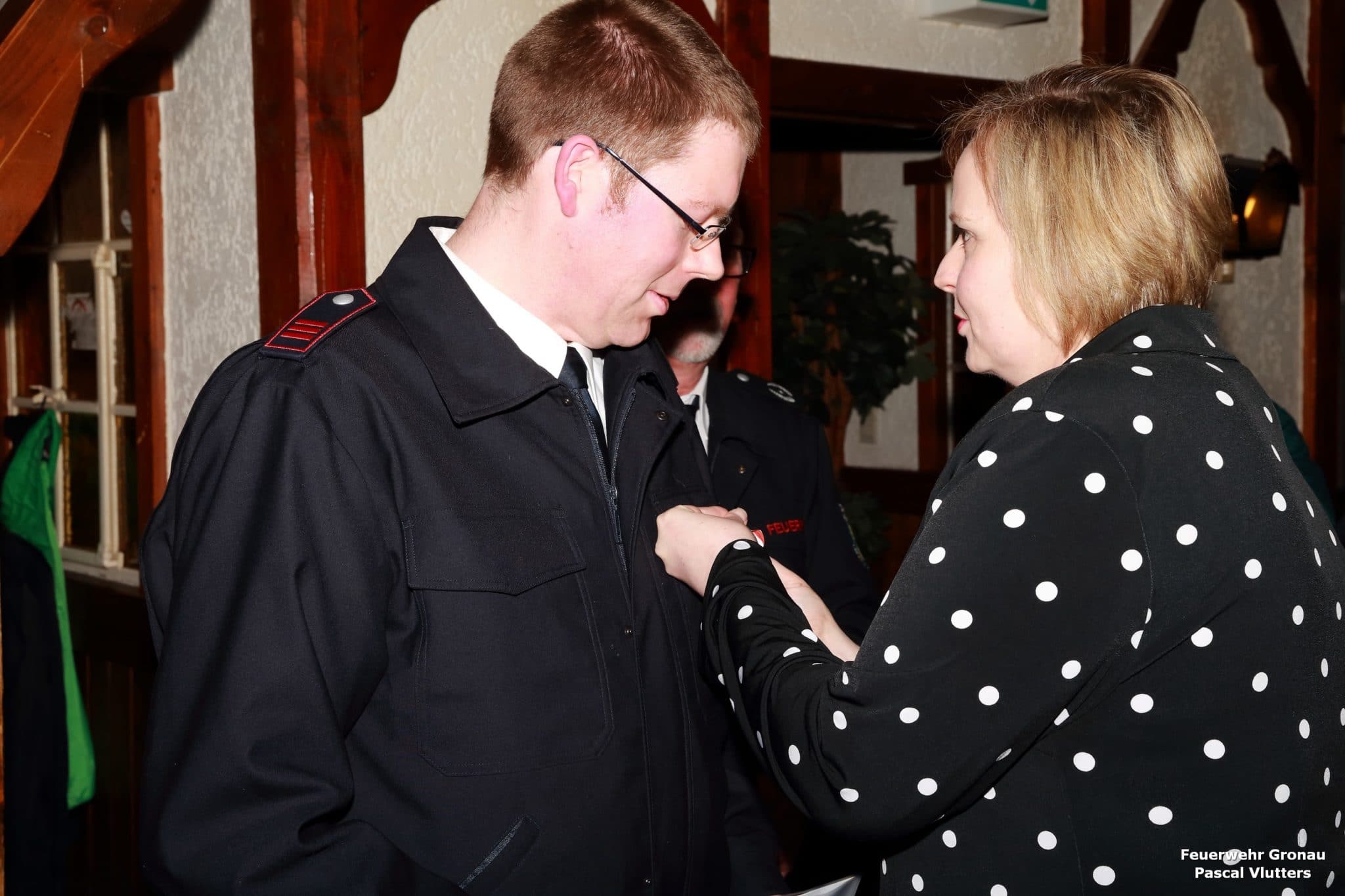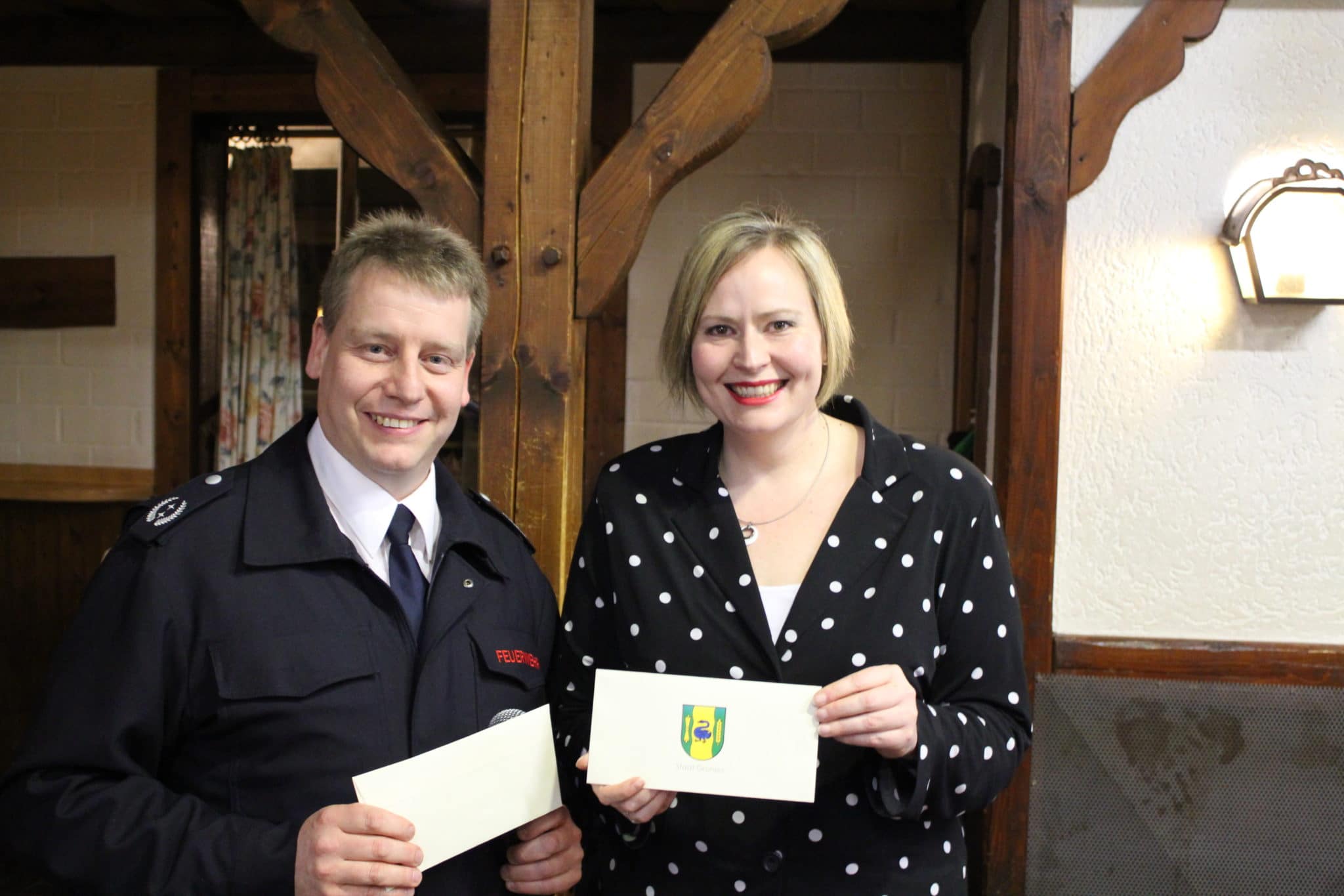 Zwei Kameraden wurden mit der Auszeichnung des Feuerwehr-Ehrenkreuzes überrascht. Der Bezirksbrandmeister, Donald Niehues, konnte Günter Setzpfand und Günter Kendzierski für außergewöhnliche Verdienste mit dem Feuerwehr Ehrenkreuz in Bronze auszeichnen.