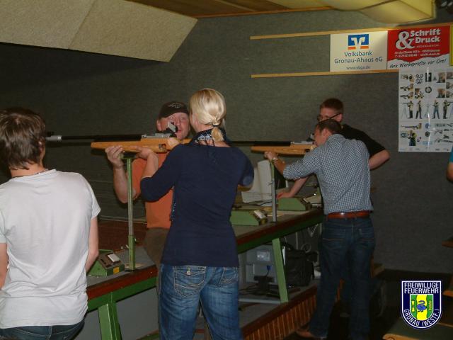Traditionell findet am letzten Donnerstag im Juni der Halbjahresabschluss statt. Eigentlich wird dann Fußball gespielt; Verheiratete gegen Junggesellen. Aber diesmal haben sich die Organisatoren etwas anderes überlegt. Mit den MTF´s ging es zum Schießstand des Hubertus Vereins. Hier hatte jeder dann drei Probeschüsse und anschließend konnte er dann sein Können mit drei weiteren Schüssen demonstrieren. Die besten Schützen wurden anschließend am Gerätehaus ausgezeichnet. Dort hatten schon fleißige Helfer alles für ein zünftiges Grillfest vorbereitet. Auch die Großleinwand fürs Public-Viewing war in Stellung gebracht. Ein gelungener Halbjahresabschluss klang in gemütlicher Runde aus.