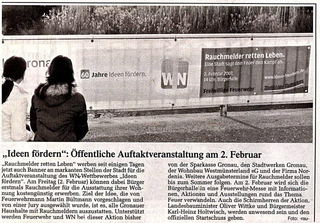 Ideen födern: Öffentliche Auftaktveranstaltung am 2. Februar Von: Webteam Feuerwehr Gronau 9. Januar 2007 Pressebericht