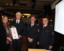 Da der Kreisbrandmeister Johannes Thesing in diesem Jahr altersmäßig als Kreisbrandmeister ausscheidet, wurde der von der Bürgermeisterin und der Feuerwehr mit einem Geschenk bedacht.