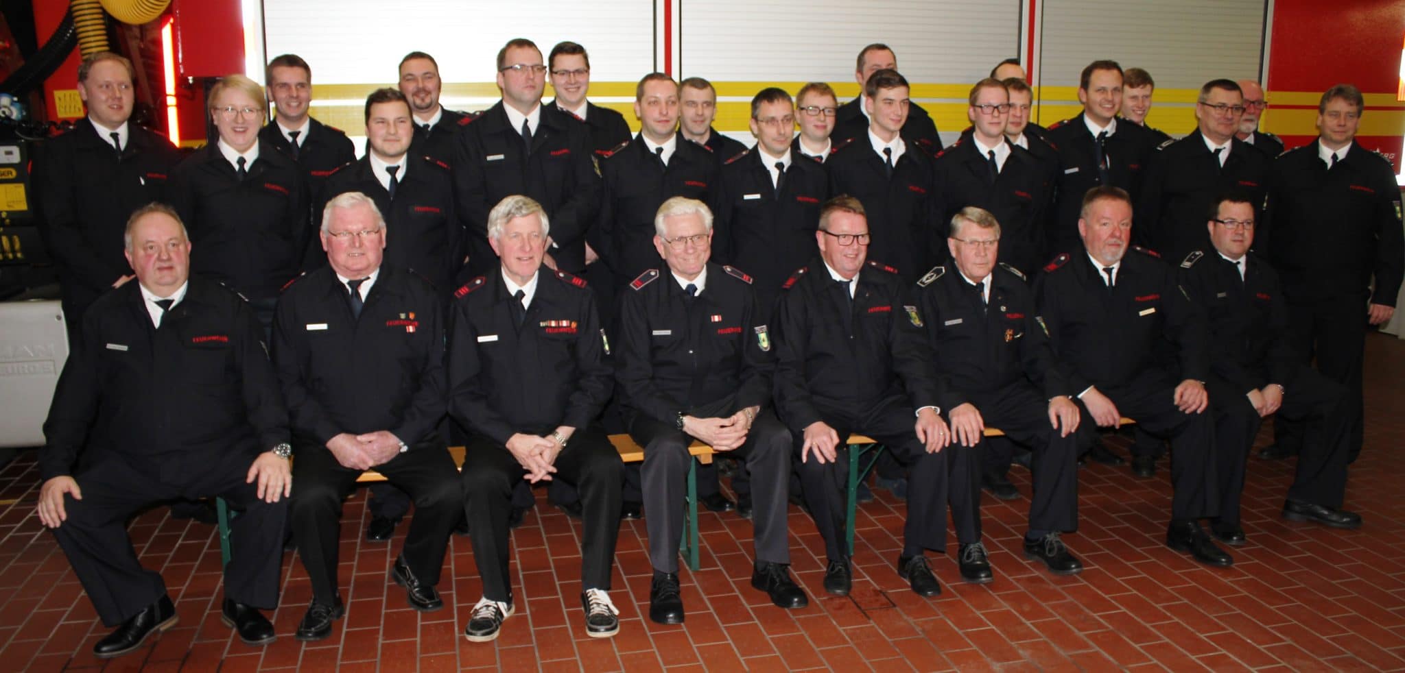 Der Jahresbericht wurde vom Löschzugführer vorgetragen. Neben den 96 aktiven Feuerwehrleuten gehören auch 19 Kameraden der Ehrenabteilung und 21 Jugendfeuerwehrleute dem Löschzug Epe an.