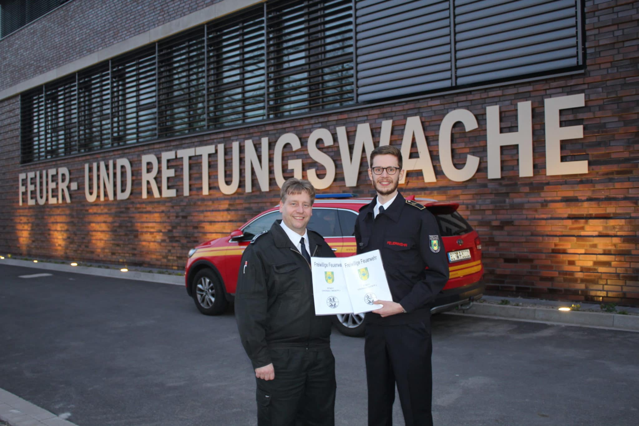 Da die Generalversammlung der Freiwilligen Feuerwehr Gronau ausgefallen ist, wurde Jan Wiefhoff jetzt durch den Leiter der Feuerwehr Gronau, Marco van Schelve, ernannt. Aufgrund seiner Ausbildung und seines fundierten Wissens bestellte Marco van Schelve Jan Wiefhoff zum Fachberater „Medizin“ (Feuerwehrarzt) sowie zum Fachberater „ABC“.