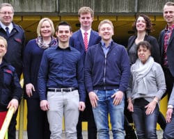 Ernennungsurkunden und beste Wünsche für eine erfolgreiche Karriere gab es kurz vor Ausbildungsbeginn. Dustin Jost, vierter. v.l., Jan Hendrik Achteresch, fünfter.v.l., Marcel Hinkerohe, sechster v.l. und Hendrik Schulte Buskase, erster von rechts, starten am 1. April als Brandmeisteranwärtern bei der Stadt Gronau. Mit der Ernennung wurden die vier gleichzeitig auch in ein Beamtenverhältnis auf Widerruf berufen.