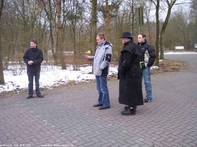 Kloatscheeten Feuerwehr Gronau Von: Webteam Feuerwehr Gronau 4. März 2006 Eine kleine Gruppe der Feuerwehr Gronau traf sich am vergangen Samstag zum Kloatscheeten. Nach einer Strecke von gut fünf Kilometer war es dann endlich so weit und es gab den lang ersehnten Grünkohl.