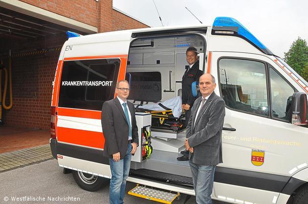 Die Rettungssanitäter brauchen nicht mehr den Kopf einzuziehen, und die Patienten profitieren von der Luftfederung des neuen Fahrzeugs: Am Freitag ist der neue Krankentransportwagen (KTW) der Feuer- und Rettungswache übergeben worden. Er gehört zur neuesten Generation in seiner Klasse. Und das ist kein Selbstzweck: Es geht schließlich darum, Patienten sicher und zügig zu transportieren.