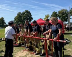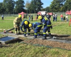 In vier verschiedenen Disziplinen messen sich die Kameradinnen und Kameraden mit rund 600 weiteren Feuerwehr-Angehörigen aus dem Kreisgebiet. Neben Knoten- und Stichen, Fragen zum feuerwehrtechnischen- und Allgemeinwissen, Übungen zur Ersten Hilfe musste ein Löschangriff mit 3 C-Rohren auf Zeit in unter 5 Minuten aufgebaut werden. Darauf hatten sich die Kameradinnen und Kameraden in den letzten Wochen intensiv vorbereitet. Die Positionen im Löschangriff stehen dabei jedoch nicht im Vorhinein fest, sondern werden zu Beginn vor Ort ausgelost. So muss jeder Teilnehmer, mit Ausnahme des Gruppenführers und des Maschinisten, auf jede Position vorbereitet sein.