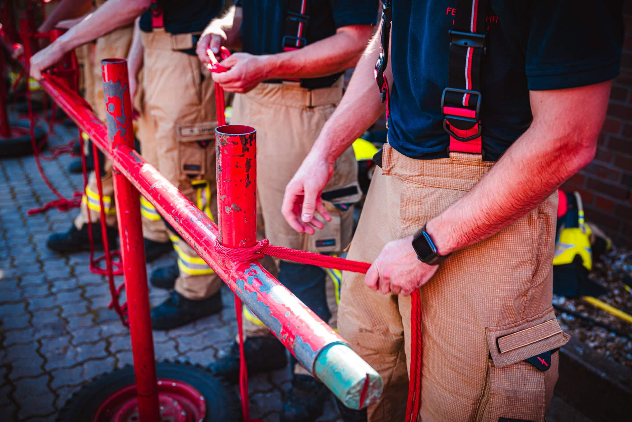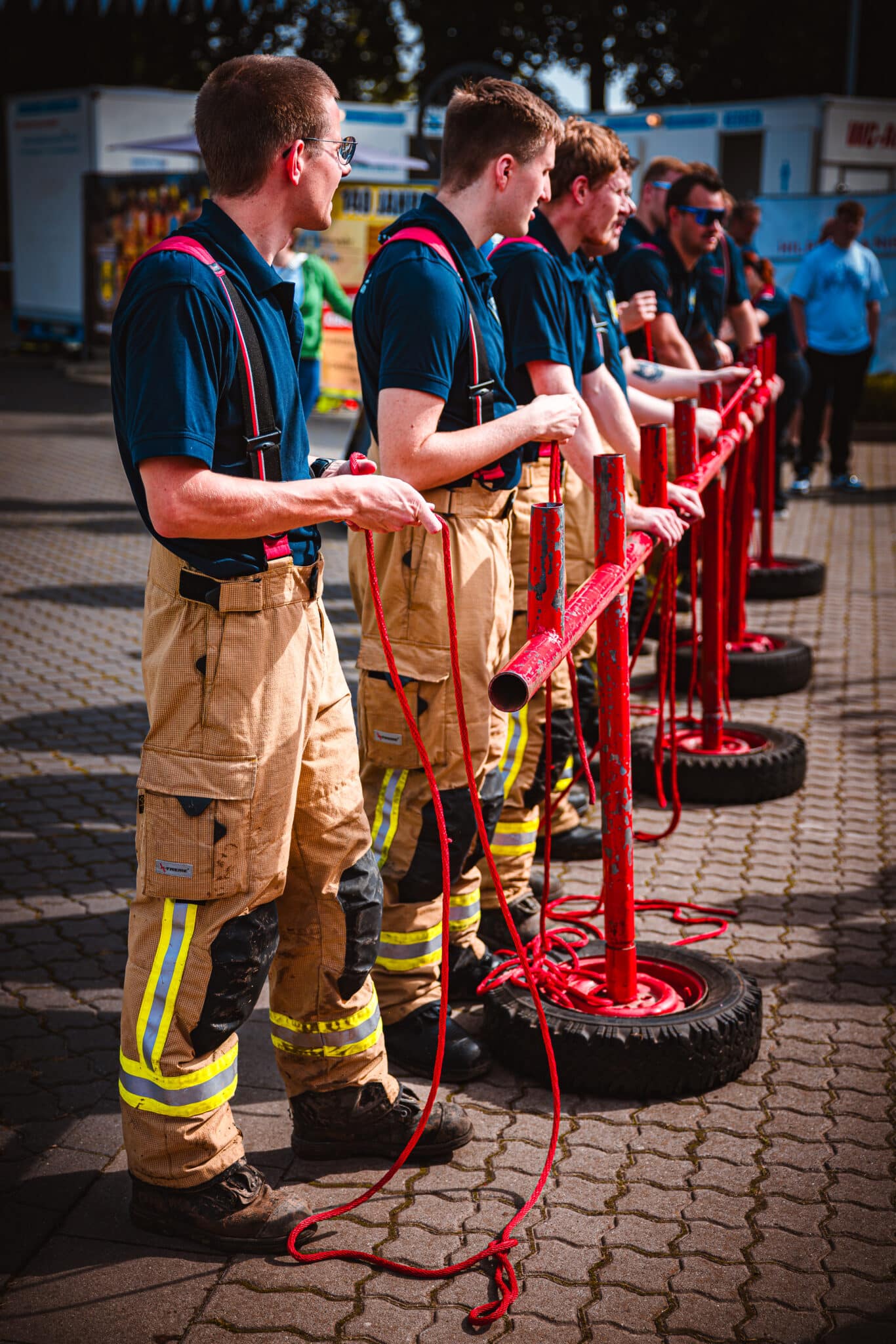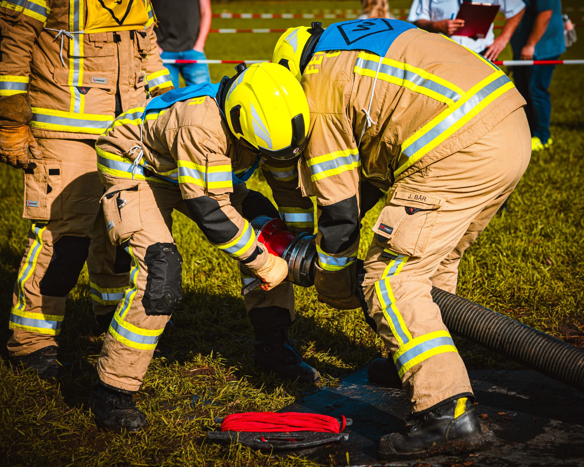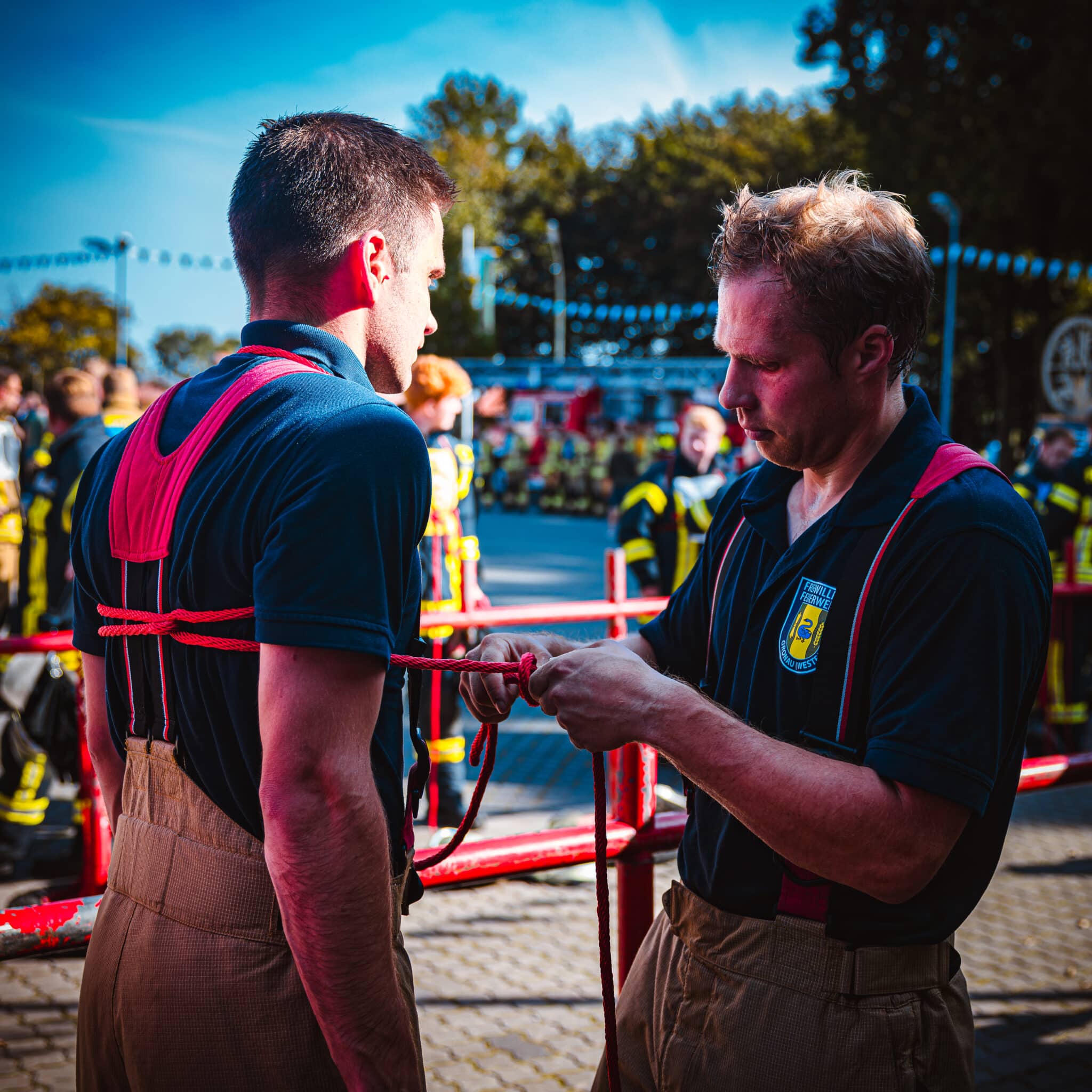 Zunächst muss in möglichst kurzer Zeit ein Löschangriff auf drei Zielfeuer (Zielscheiben) aufgebaut werden. Zunächst wird von zwei Trupps die Wasserversorgung aus einem Wasserbecken aufgebaut. Anschließend werden ein B- und zwei C-Rohre aufgebaut um mit dem Wasser die Zielfeuer zu treffen. Die zweite Disziplin sind feuerwehrtechnische Knoten, die jeder Kamerad beherrschen sollte. In diesem Jahr waren das ein Schotenstich, ein Ankerstich und ein Rettungsbund. Im Anschluss hatten die Kameraden jeweils Fragen zu beantworten, bevor es zu letzten Disziplin ging: Der Ersten Hilfe. Es galt zu beweisen, dass eine Reanimationssituation erkannt und abgearbeitet werden kann, eine stabile Seitenlage beherrscht wird und auch ein Druckverband korrekt angelegt werden kann.