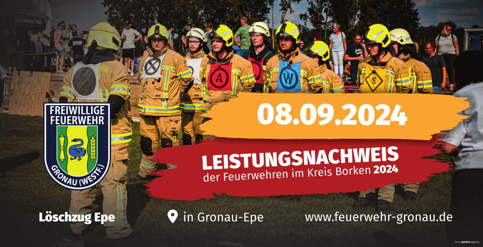 Im kommenden Jahr wird der Leistungsnachweis der Feuerwehren vom Löschzug Epe ausgetragen. Am 08.09.2023 freuen wir uns die Abordnungen aus dem ganzen Kreis und viele Besucher in Epe auf dem Platz des Reit- und Zuchtvereins Epe e.V. begrüßen zu dürfen.