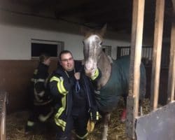 Im Rahmen des wöchentlichen Dienstabends besichtigten ca. 35 Feuerwehrleute die Reit- und Stallanlagen an der Gerdingsseite. Auch hier war es wichtig, die unterschiedlichen Schließvorrichtungen kennen zu lernen, um in die einzelnen Stallboxen zu gelangen. Jeder Teilnehmer konnte nach einer wirklich guten Anleitung ein Pferd oder Pony ins Freie führen. Auch das Rausführen der Pferde im Dunkeln durch Feuerwehrleute mit Atemschutz klappte problemlos.