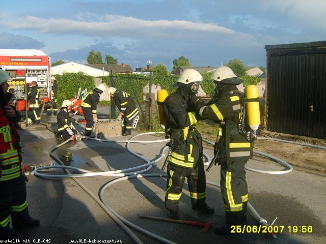 Zum Halbjahresabschluss fand in diesem Jahr die Löschzugübung bei der Firma Nordenia statt. Ein leerstehendes Wohngebäude konnte intensiv vernebelt werden, so dass selbst am Boden keine Sicht vorhanden war. In diesem Gebäude war durch Atemschutztrupps ein Dummy zu suchen und zu retten.