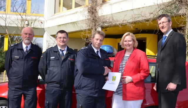 Bürgermeisterin Jürgens dankte anlässlich der Überreichung der Urkunde den stellvertretenden Wehrführern für die in der Vergangenheit zusätzlich geleistete Arbeit und wünschte dem neuen Amtsinhaber erfolgreiches Wirken an der Spitze der Freiwilligen Feuerwehr Gronau.