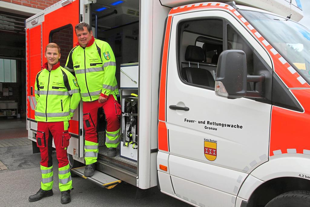 Viel Zeit zum Überlegen hatten Tobias Wessendorf und Alexander Bloem am Freitag nicht. In der Mittagszeit wurden die Notfallsanitäter zu einer Wohnung an der Gildehauser Straße beordert. Einer werdenden Mutter sei die Fruchtblase geplatzt, so die Einsatzmeldung.
