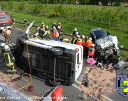 Zu einem schweren Verkehrsunfall kam es am späten Montag Nachmittag gegen 16:30 Uhr auf der B54. Ein Kleintransporter und ein PKW prallten aufeinander. Verletzt wurden insgesamt 4 Personen. Zwei davon Tödlich. Im Einsatz waren unter anderem 2 Rettungshubschrauber, wovon einer nicht mehr an der Einsatzstelle benötigt wurde und direkt zu einem Folgeeinsatz nach Graes weiterflog, Rettungswagen aus Gronau, Steinfurt, Ahaus…