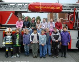 Die 5. Schulklasse der Pestalozzischule Gronau besuchte die Feuer- und Rettungswache mit ihrer Klassenlehrerin Frau Peters. Im Vorfeld hatte sich die Klasse schon mit dem Thema Feuer und Feuerwehr auseinander gesetzt. Verschiedene Experimente oder das Absetzen des Notrufes wurden geübt. Bei der Feuerwehr konnte Martin Bültmann dann anschaulich das Thema vertiefen. Die 2 1/2 Stunden sind wie im Flug vergangen.