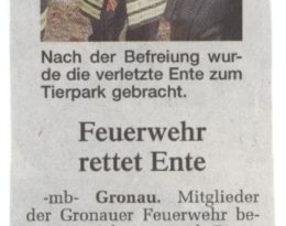 Die Gronauer Feuerwehr wurde am gestrigen Tag zu einem Einsatz im Bereich Kurfürstenstraße/Garnweg gerufen. Spaziergänger hatten beobachtet wie eine Ente auf einem noch nicht bebauten Grundstück, in dem das Wasser Kniehoch stand und gefroren war, sich nicht mehr selbst befreien konnte. Die daraufhin alarmierte Feuerwehr Gronau erwies sich als Retter in höchster Not. Einer der alarmierten Feuerwehrmänner krempelte die Hosenbeine…