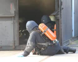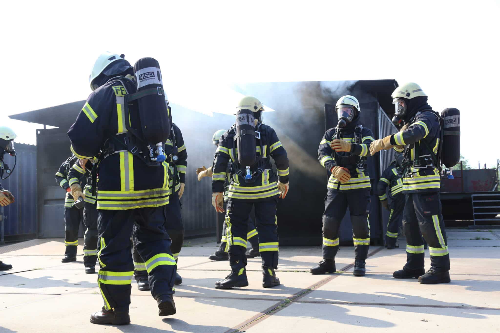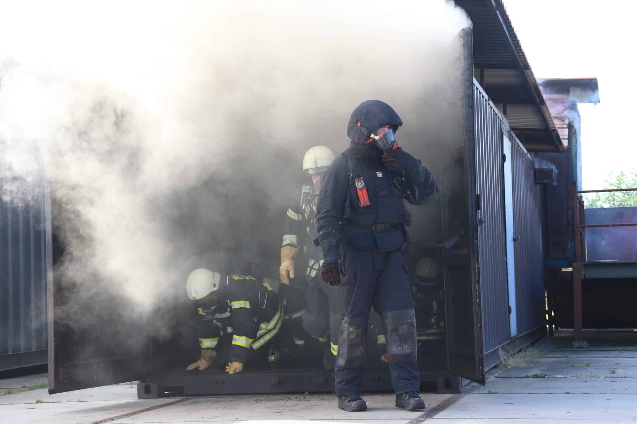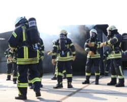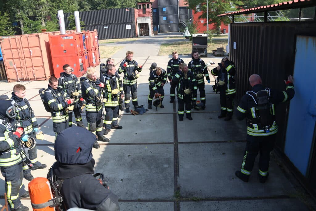 Zum Ende hin gab es noch eine Abschlussübung an einem größeren Objekt, wo neben der Brandbekämpfung die Menschenrettung im Vordergrund stand. Hier wurden auch Belastungsgrenzen aufgezeigt, die unter Einfluss von Wetter oder persönlicher Verfassung entstehen können.