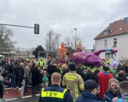 Die Feuerwehr und der Rettungsdienst stellten für den Karnevalsumzug am Sonntag eine Sicherheitswache.