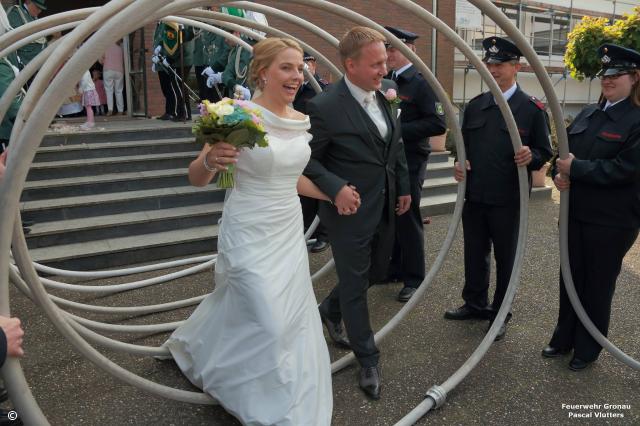 Mit einem Spalier wurde dem Hochzeitspaar vom Löschzug Gronau gratuliert.