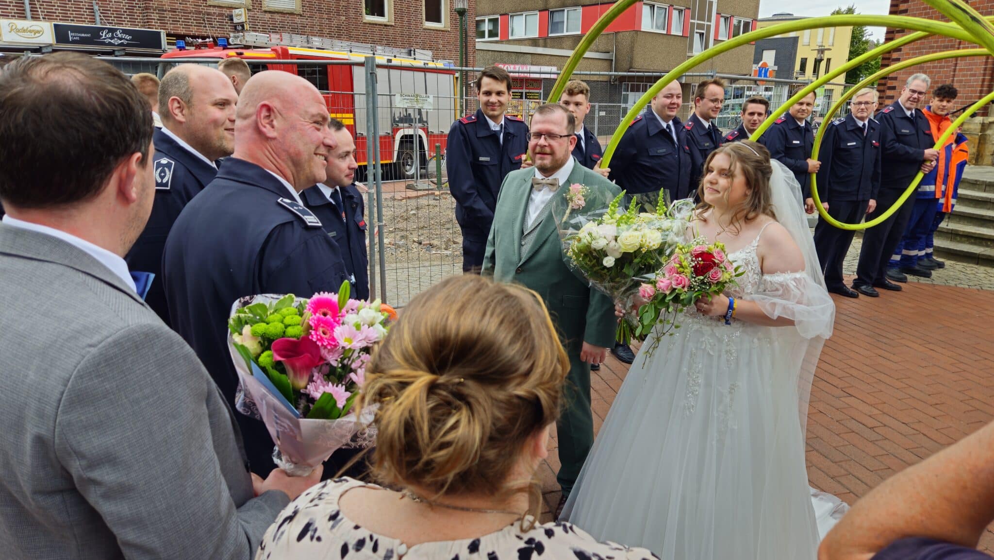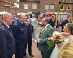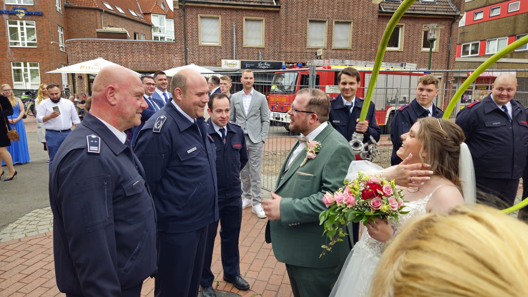 Der Löschzug Gronau und die Jugendfeuerwehr überbrachten die Glückwünsche der Feuerwehr und wünschten dem Brautpaar für die Zukunft alles Gute.
