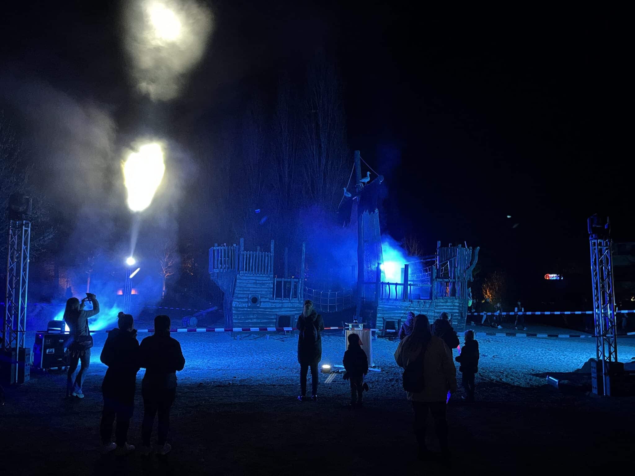 Die Feuerwehr nahm an den Nachteinblicken mit einem Stand für die Öffentlichkeitsarbeit teil. Außerdem wurden passend zum Anlass verschiedene Leuchtartikel verkauft.
