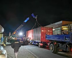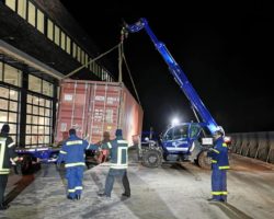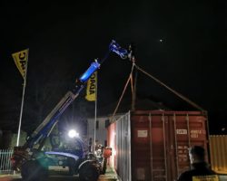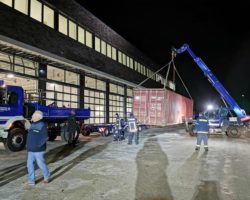 Das THW Ahaus konnte mit Ihrer Fachgruppe Räumen 2 große 40-Fuß Container verladen und zum Neubau der Feuer- und Rettungswache transportieren.
