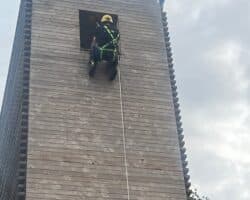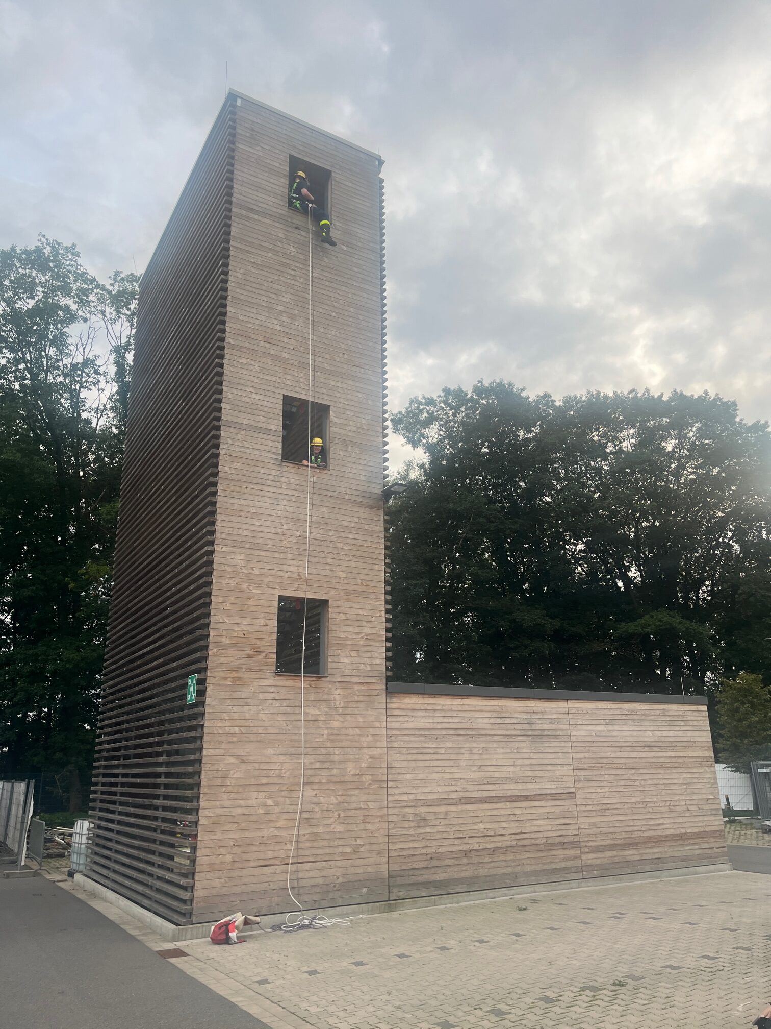 Höhenrettung ist auch beim THW eines von vielen Ausbildungsinhalten. Und so bietet sich für den Ortsverband Gronau unser Übungsturm für die Ausbildung an.