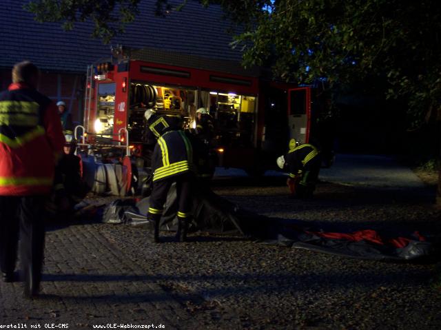 Am Montag Abend rückte der Löschzug Gronau zu einer Übung auf einem Bauernhof am Rande der Stadt aus. Es war vorgegeben das in einem Stallgebäude vermutlich zwei Personen vermißt werden,in dem ein Feuer ausgebrochen war. Desweiteren mußte mittels der Drehleiter das anliegende Gebäude gehalten werden, damit das Feuer sich nicht weiter ausbreiten kann.
