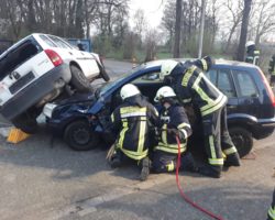 Auf einer Landstraße waren 2 PKW’s verunfallt und in den Fahrzeugen wurden 3 Personen, darunter 1 Kind eingeklemmt.