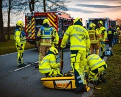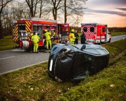 Zwei PKW kollidierten am Dienstag, 26.03.2024, gegen 17 Uhr auf der Alstätter Straße in Höhe der Einmündung des Amelandswegs. Dabei landete ein PKW im Graben neben der Straße auf der Seite, wodurch eine Person leicht verletzt wurde.