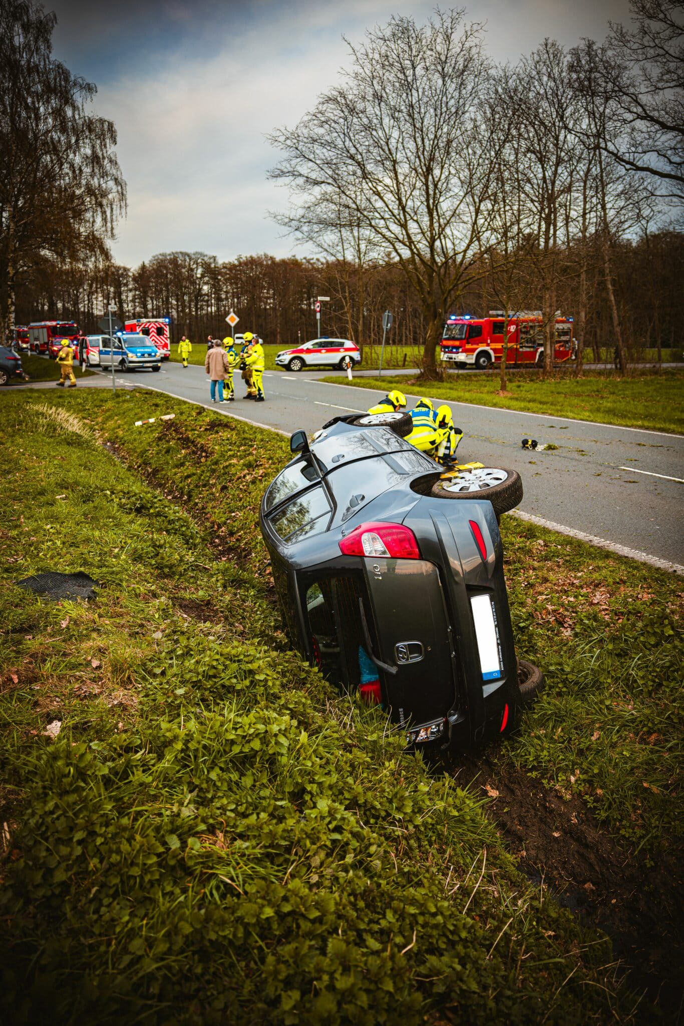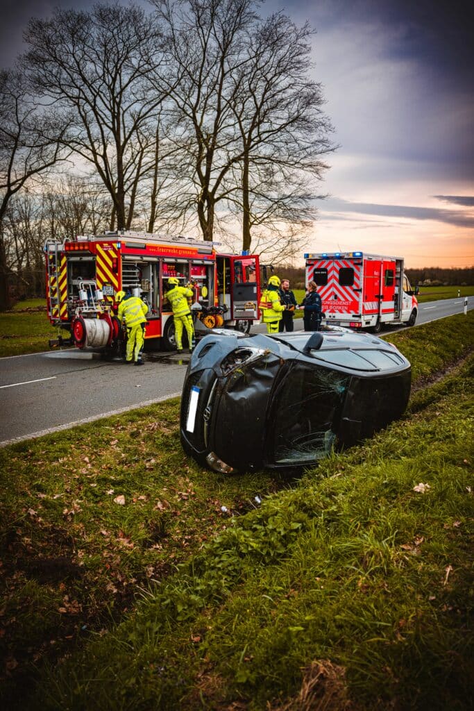 Die Feuerwehr Gronau sicherte die Unfallstelle ab und unterstützte den Rettungsdienst bei der Befreiung einer Person aus dem im Graben liegenden PKW. Eine weitere Person konnte den PKW selbstständig unverletzt verlassen, ebenso der Fahrer des zweiten PKW.