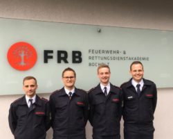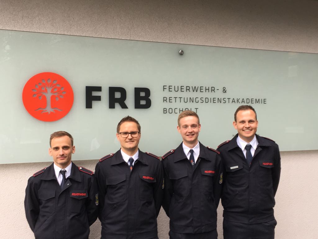 Nach 18 monatiger Ausbildung haben Lukas Jager, Tobias Kleinod, Gunnar Wieking und Bastian Heim ihre Prüfungen an der Feuerwehr- und Rettungsdienstakademie in Bocholt abgelegt. Am 01.04.2016 haben alle 4 ihre Ausbildung begonnen. Neben der Theorie wurden die Anwärter auch in der Praxis fit gemacht. Bei den einzelnen Wachpraktika konnte dann das Erlernte vertieft und teilweise auch schon angewandt werden.