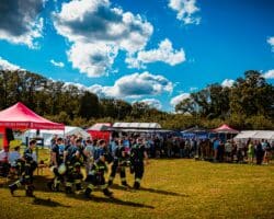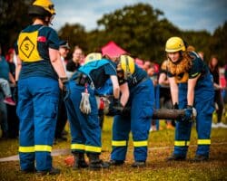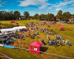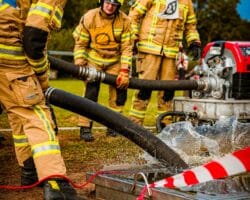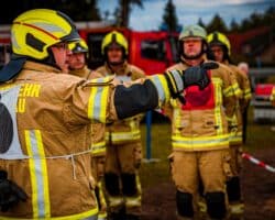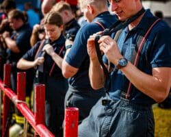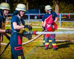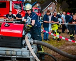 Bestes Wetter und ausgelassene Volksfeststimmung herrschte am vergangenen Sonntag in Gronau-Epe beim Leistungsnachweis der Feuerwehren des Kreis Borken. Insgesamt rund 5000 Besucher und Besucherinnen sowie Feuerwehrangehörige waren auf das Gelände des Reit-, Zucht und Fahrvereins Epe e.V. gekommen. Bei strahlendem Sonnenschein und angenehmer Wärme zeigten die 72 Gruppen der verschiedenen Feuerwehren aus dem Kreis Borken, aus Leverkusen und Bottrop ihr Können. Gemischte Gruppen aus Feuerwehr und THW sowie aus deutschen und niederländischen Kameraden sind schon seit Jahren Teil des Leistungsnachweises. „Fachfremd“ trat in diesem Jahr sogar eine Gruppe des DRK Ortsverband Nienborg-Heek an und zeigte eindrucksvoll, dass auch sie die Aufgaben lösen konnten. Mit einer fehlerfreien Leistung und einer Zeit im vorderen Drittel ließen die Kameradinnen und Kameraden auch so manche Feuerwehr-Gruppe hinter sich.