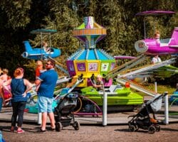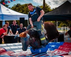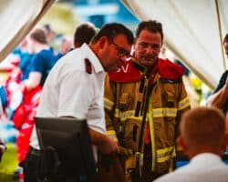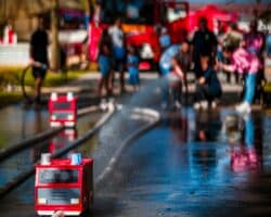 Richtige Volksfeststimmung kam auf dem Gelände auch für Besucher auf: Die Kinder konnten eine Runde im Karussell drehen, kleine Feuerwehrautos mit Wasser vor sich hertreiben oder eine Tüte Popcorn genießen. Bei dem warmen Wetter gab es dann am Eis-Stand oder bei kühlen Getränken eine Abkühlung. Für das Leibliche Wohl sorgte ein großer Grillstand und eine Cafeteria, die die Kameradinnen und Kameraden des Löschzug Epe aufgebaut hatten.