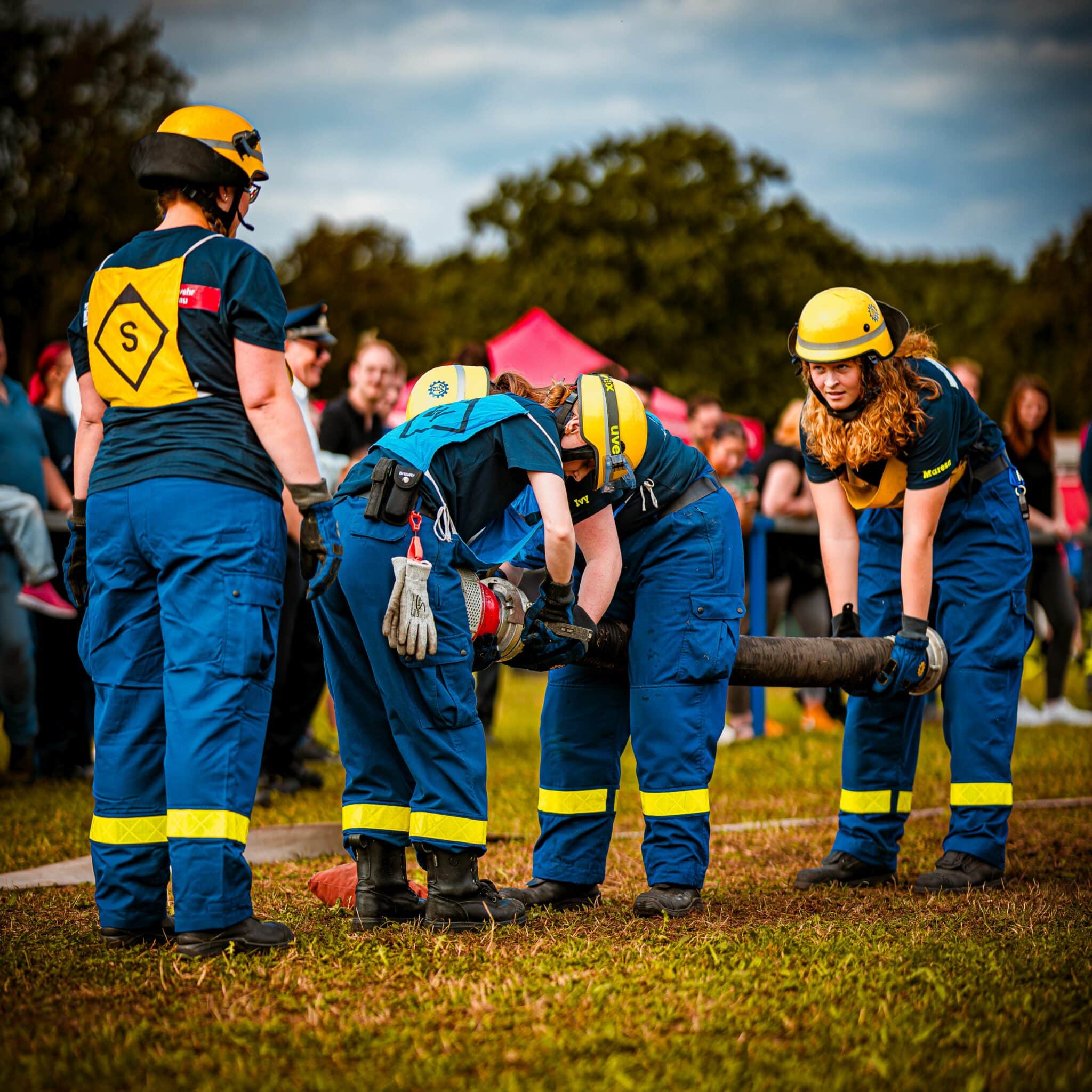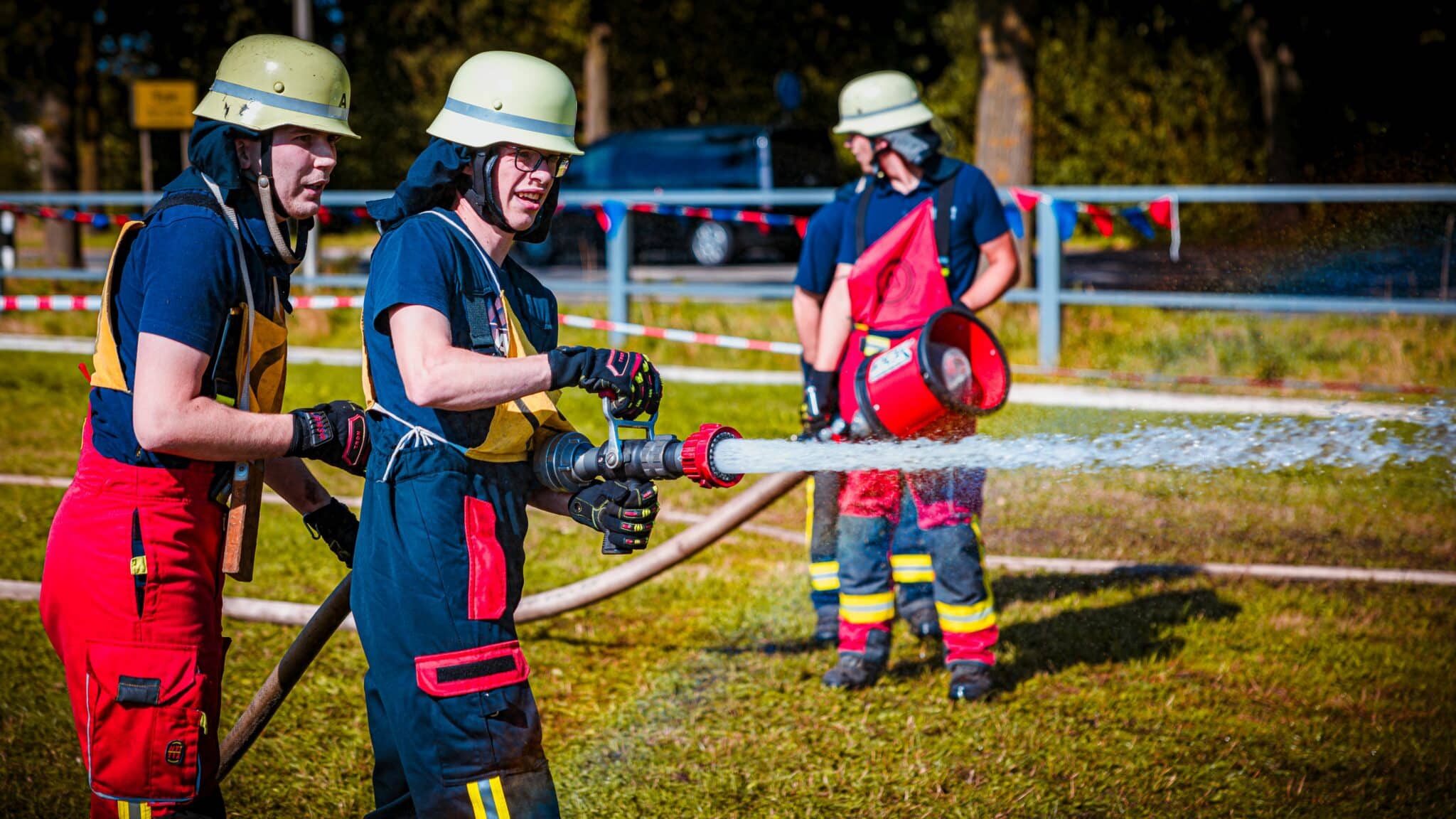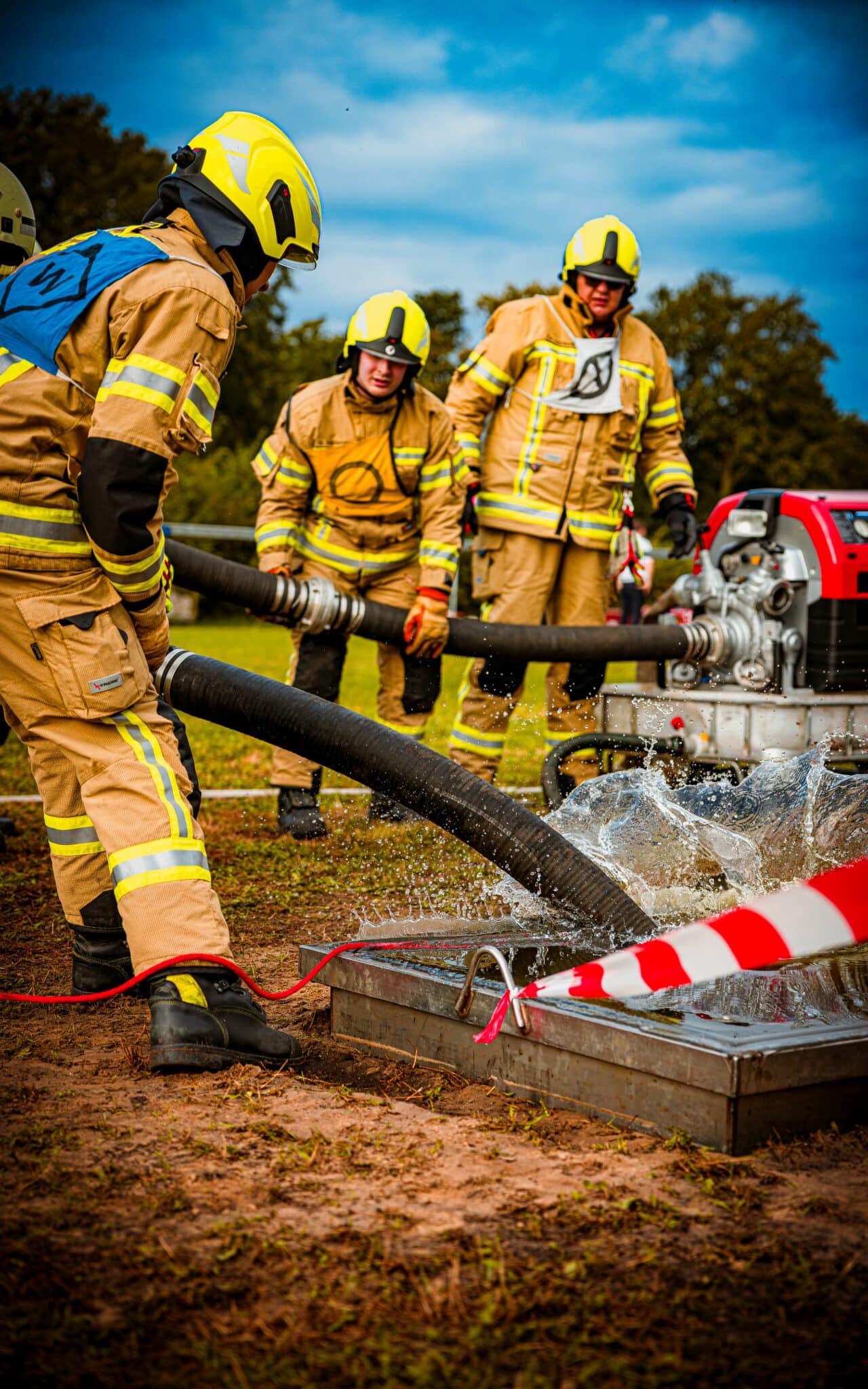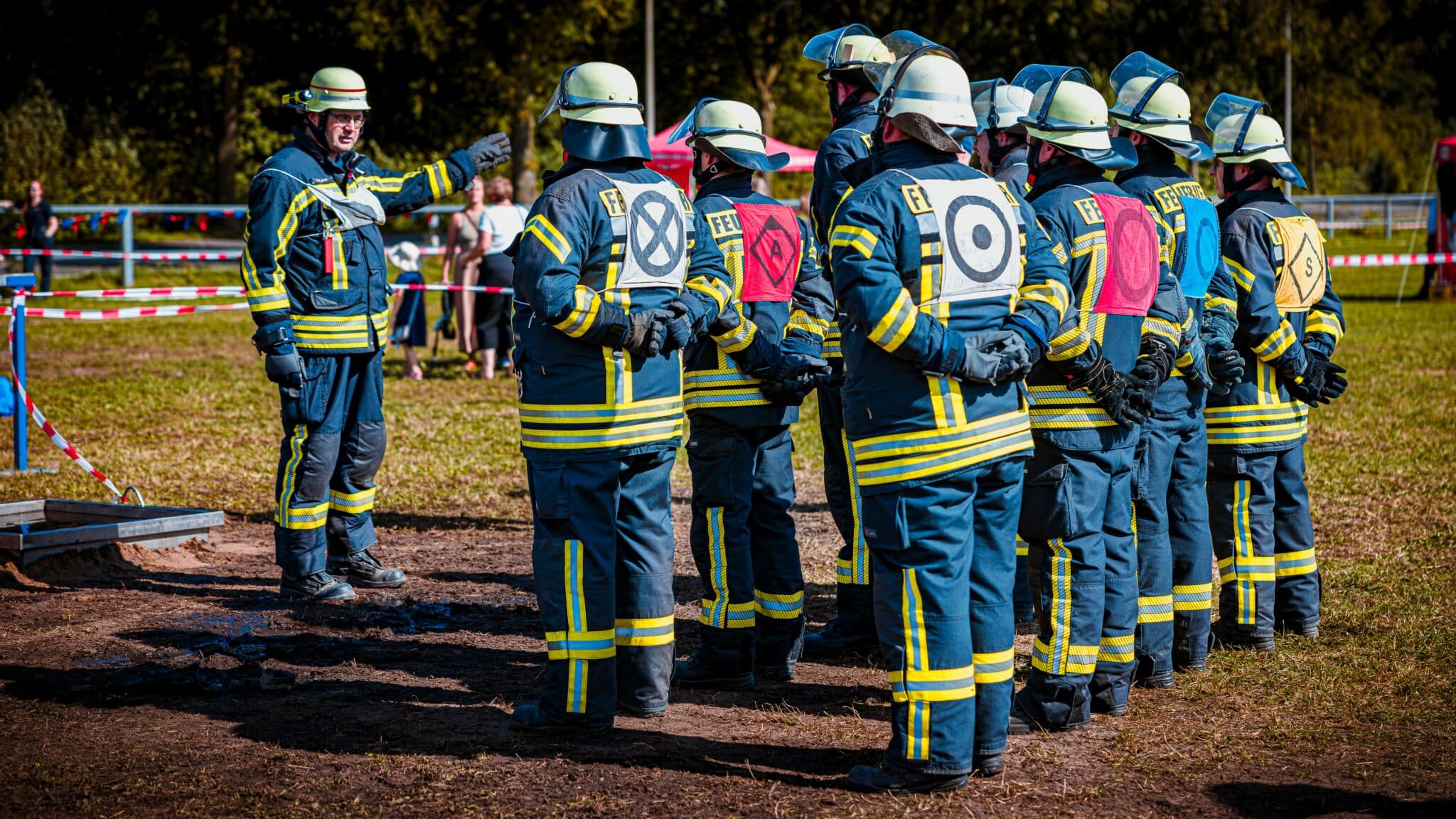 Bestes Wetter und ausgelassene Volksfeststimmung herrschte am vergangenen Sonntag in Gronau-Epe beim Leistungsnachweis der Feuerwehren des Kreis Borken. Insgesamt rund 5000 Besucher und Besucherinnen sowie Feuerwehrangehörige waren auf das Gelände des Reit-, Zucht und Fahrvereins Epe e.V. gekommen. Bei strahlendem Sonnenschein und angenehmer Wärme zeigten die 72 Gruppen der verschiedenen Feuerwehren aus dem Kreis Borken, aus Leverkusen und Bottrop ihr Können. Gemischte Gruppen aus Feuerwehr und THW sowie aus deutschen und niederländischen Kameraden sind schon seit Jahren Teil des Leistungsnachweises. „Fachfremd“ trat in diesem Jahr sogar eine Gruppe des DRK Ortsverband Nienborg-Heek an und zeigte eindrucksvoll, dass auch sie die Aufgaben lösen konnten. Mit einer fehlerfreien Leistung und einer Zeit im vorderen Drittel ließen die Kameradinnen und Kameraden auch so manche Feuerwehr-Gruppe hinter sich.