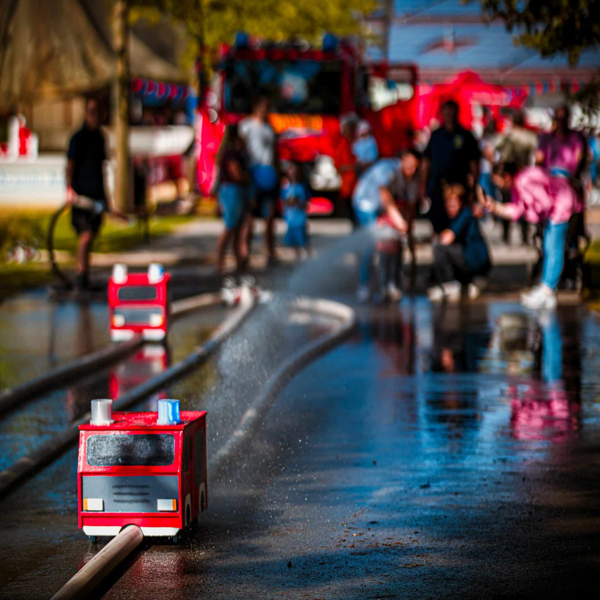 Richtige Volksfeststimmung kam auf dem Gelände auch für Besucher auf: Die Kinder konnten eine Runde im Karussell drehen, kleine Feuerwehrautos mit Wasser vor sich hertreiben oder eine Tüte Popcorn genießen. Bei dem warmen Wetter gab es dann am Eis-Stand oder bei kühlen Getränken eine Abkühlung. Für das Leibliche Wohl sorgte ein großer Grillstand und eine Cafeteria, die die Kameradinnen und Kameraden des Löschzug Epe aufgebaut hatten.