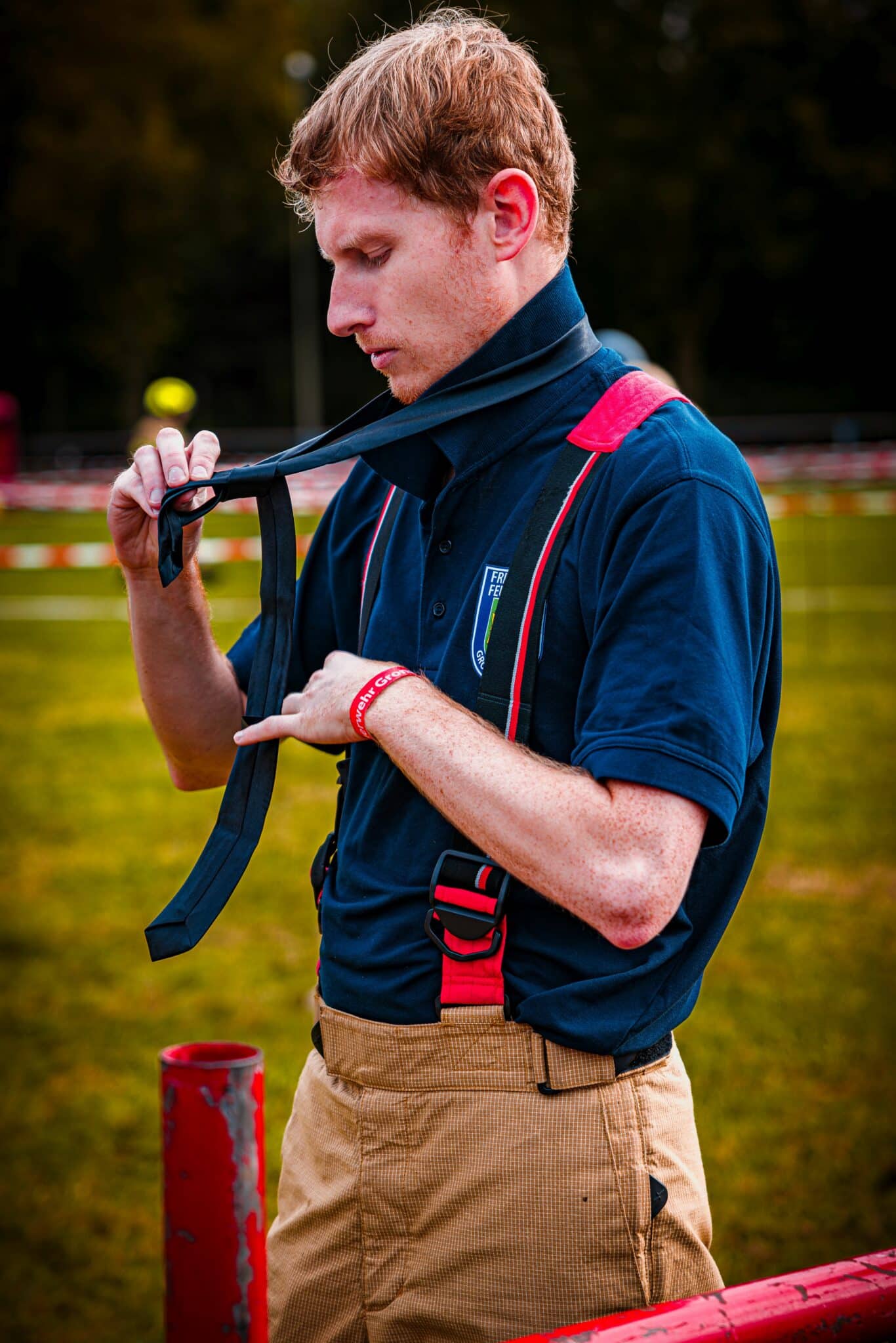 Die Aufgabenstellungen waren beim Leistungsnachweis vielfältig: Einen Löschangriff auf Zeit aufzubauen war dabei eine. Es musste eine Leitung zur Wasserentnahme zu viert gekuppelt werden und dann Leitungen für drei Strahlrohre aufgebaut werden um die fiktiven Feuer zu löschen. Auch erste Hilfe mussten die Gruppen leisten: Eine Reanimation einer Übungspuppe musste ebenso wie ein Druckverband und eine stabile Seitenlage fehlerfrei vorgeführt werden. Nach der Übung „Knoten und Stiche“, bei der drei verschiedene vorgegebene Knoten gezeigt werden mussten, darunter in diesem Jahr der Krawattenknoten, mussten auch Fragen zu Feuerwehr- wie Allgemeinwissen beantwortet werden.