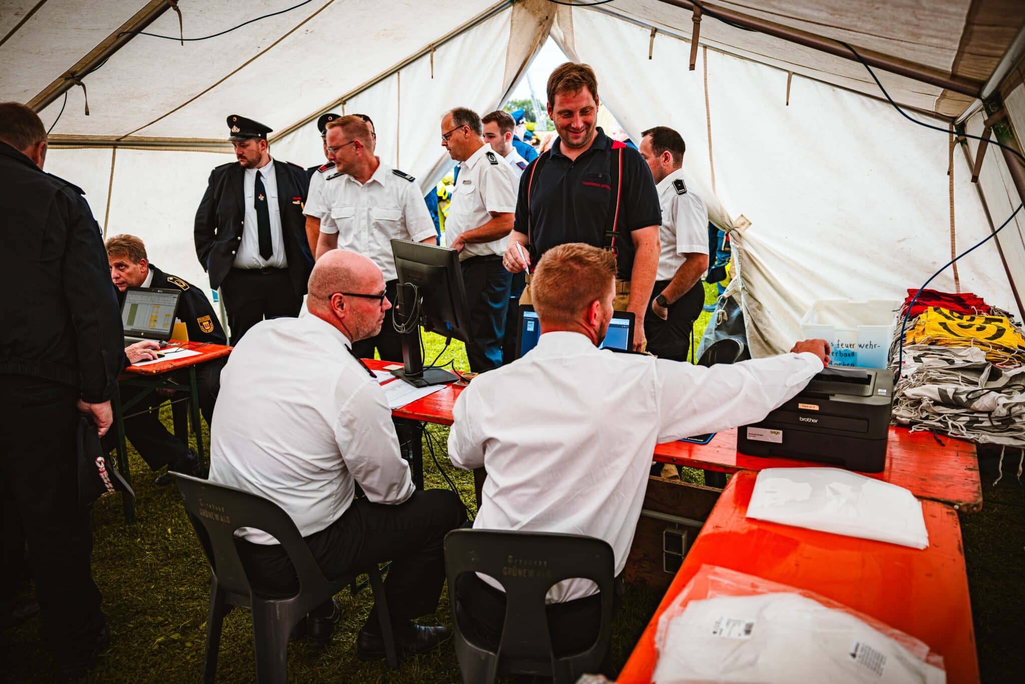 Die Eper Vereine unterstützen den Löschzug Epe bei der Bewirtung der Gäste und Feuerwehrkameraden. Landrat Dr. Kai Zwicker, Ordnungsdezernentin Dr. Elisabeth Schwenzow, Bürgermeister Rainer Doetkotte und weitere Gäste aus Politik und Feuerwehren wurden von den stellvertretenden Kreisbrandmeistern Marco van Schelve und Christoph Terwiel begrüßt und über das Gelände geführt.