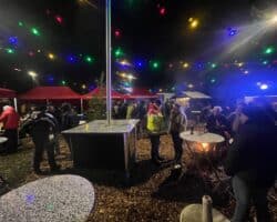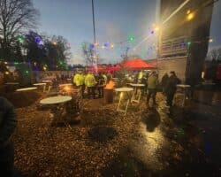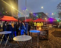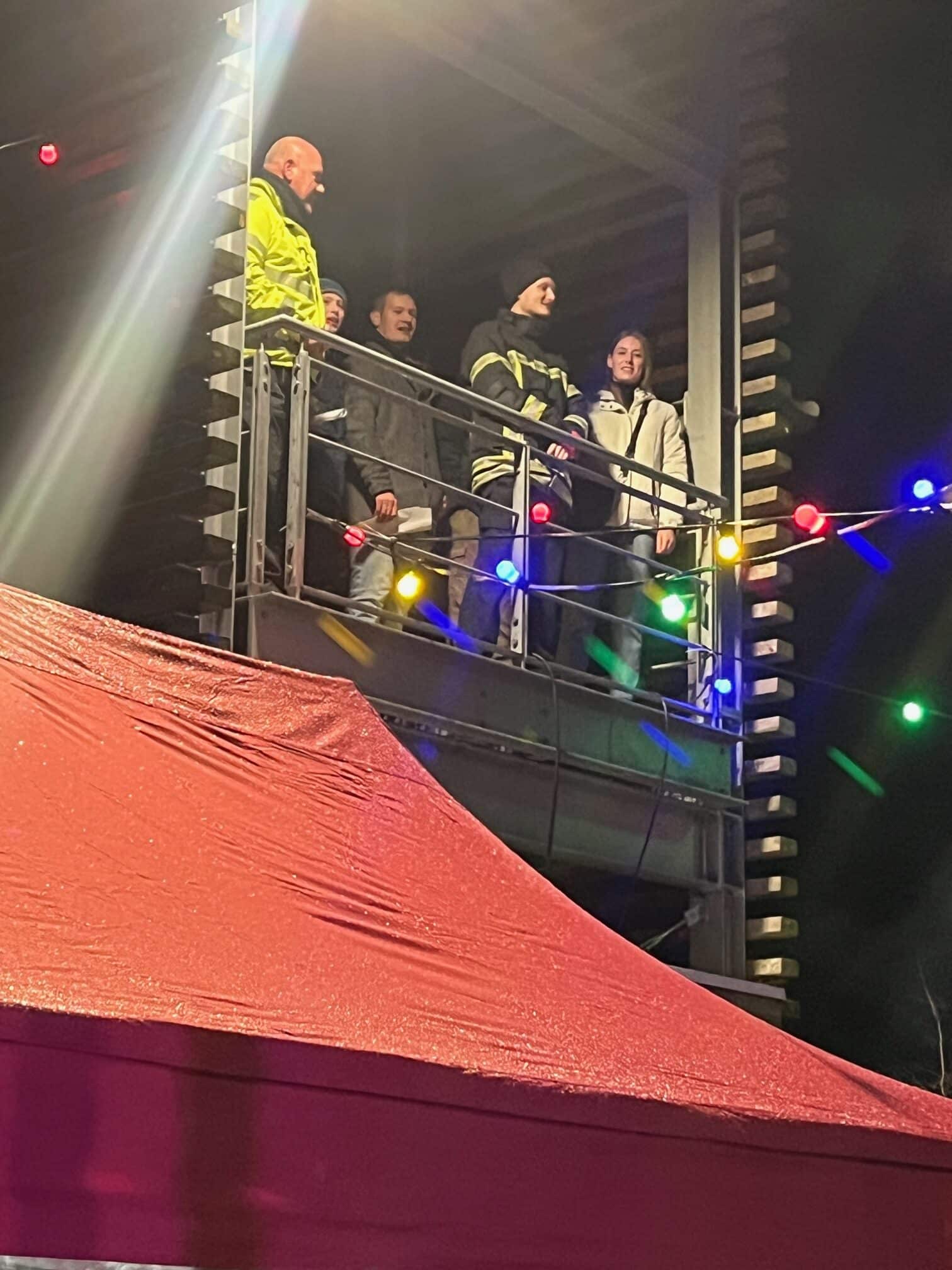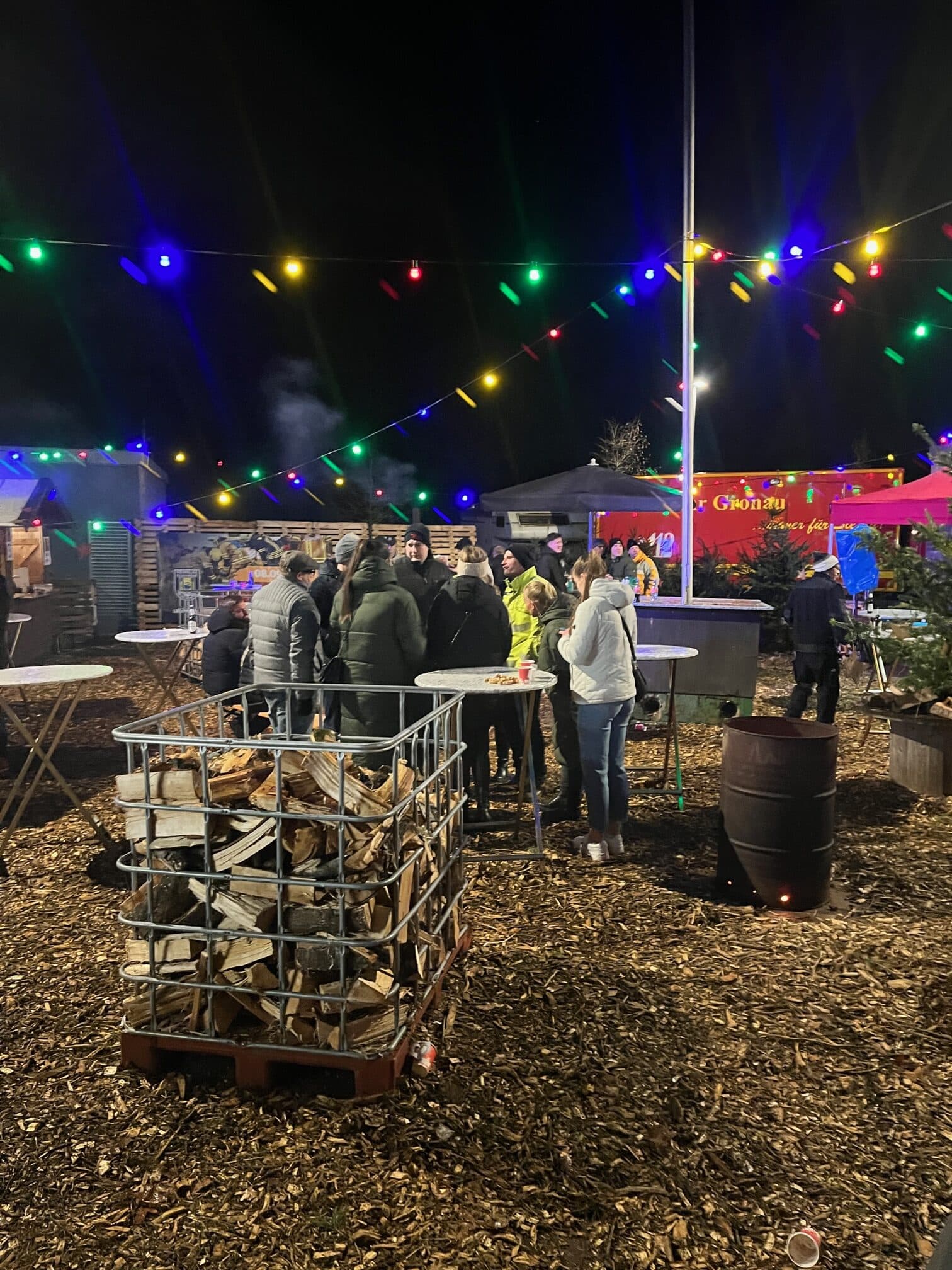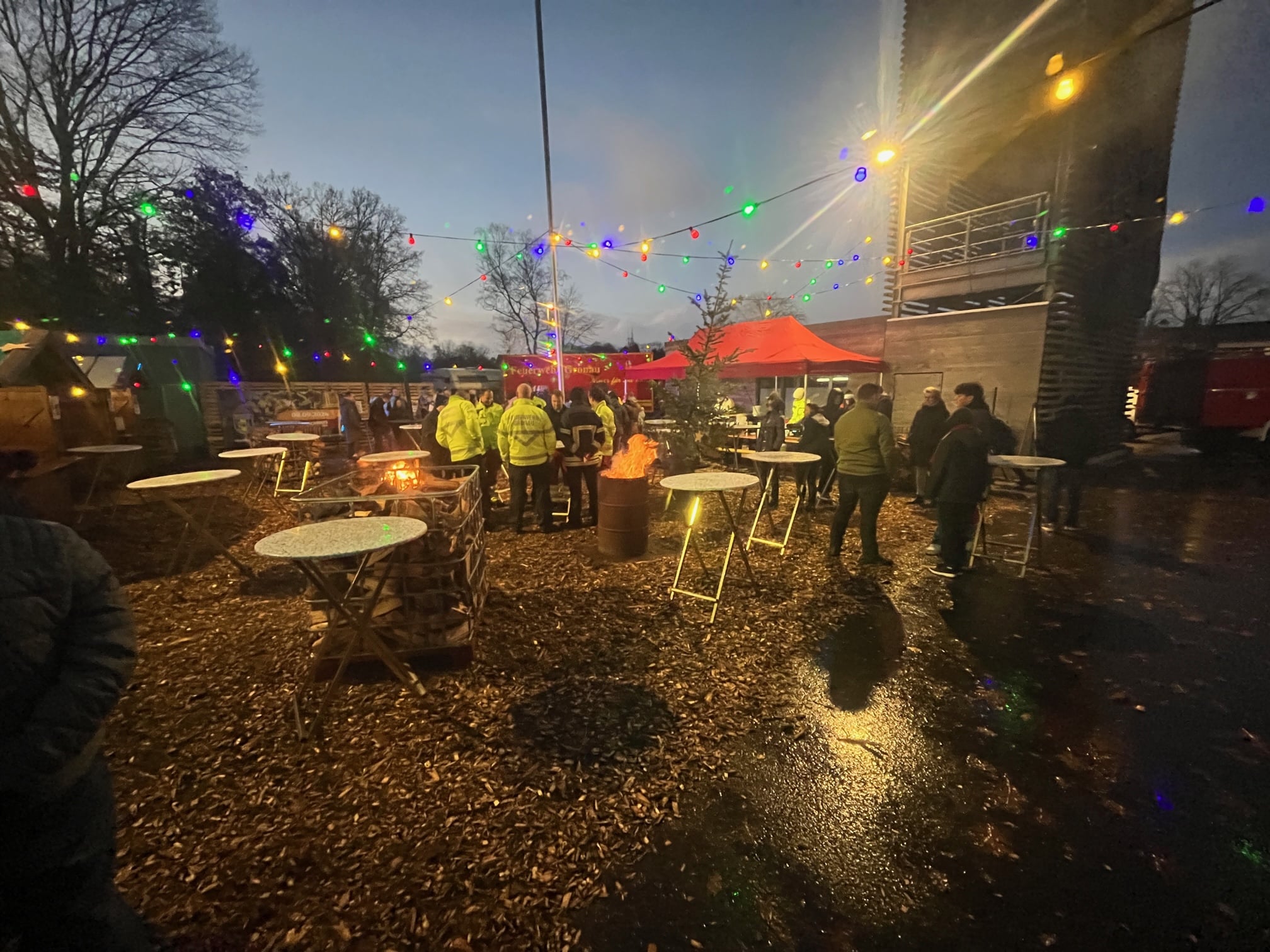 Mehrere Feuertonnen, Lichterketten und Hackschnitzel schufen eine gemütliche und außergewöhnliche Atmosphäre am Übungsturm.